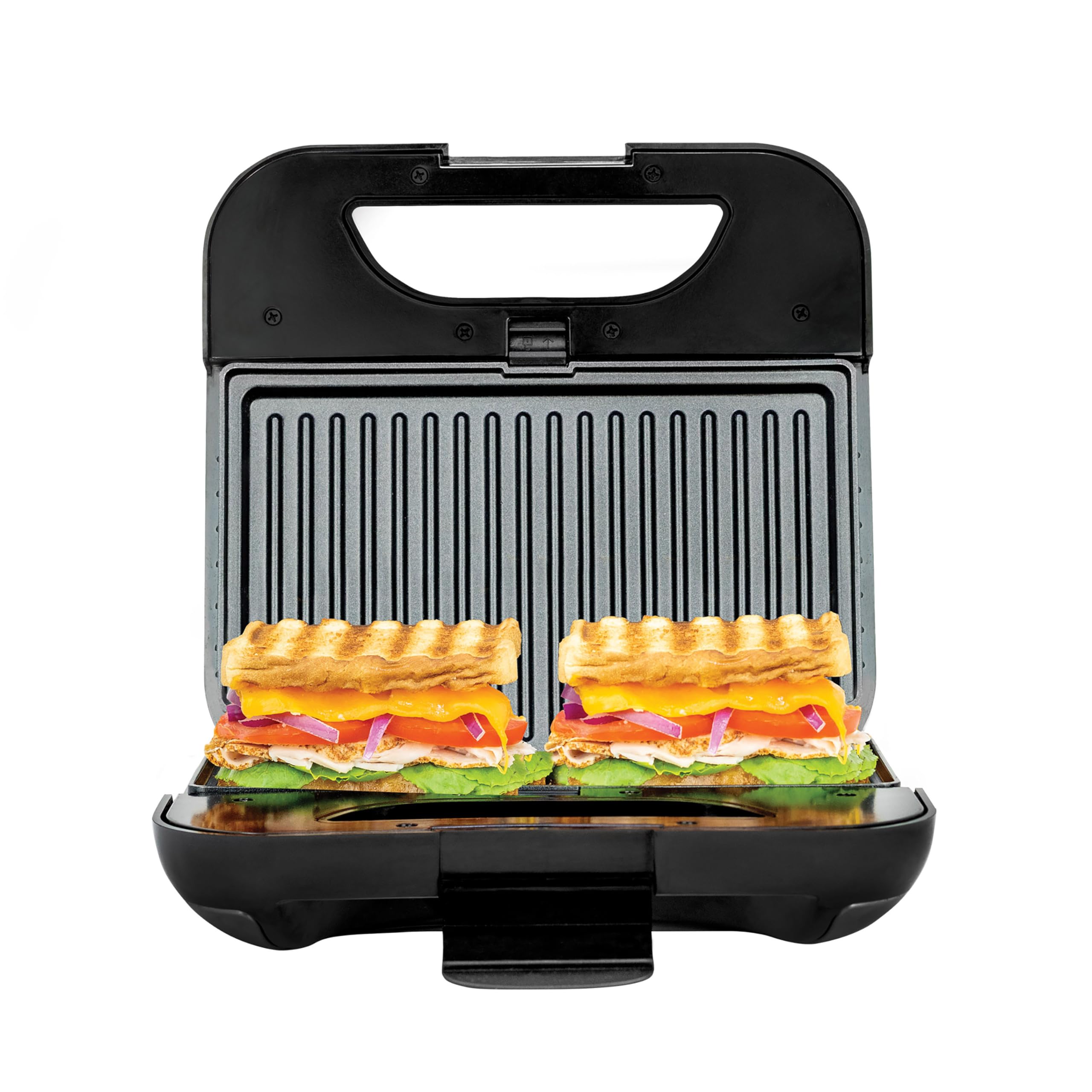 Sandwichera de 800 W con platos recubiertos antiadherentes, calefacción de doble cara, fácil de limpiar y almacenar, perfecta para