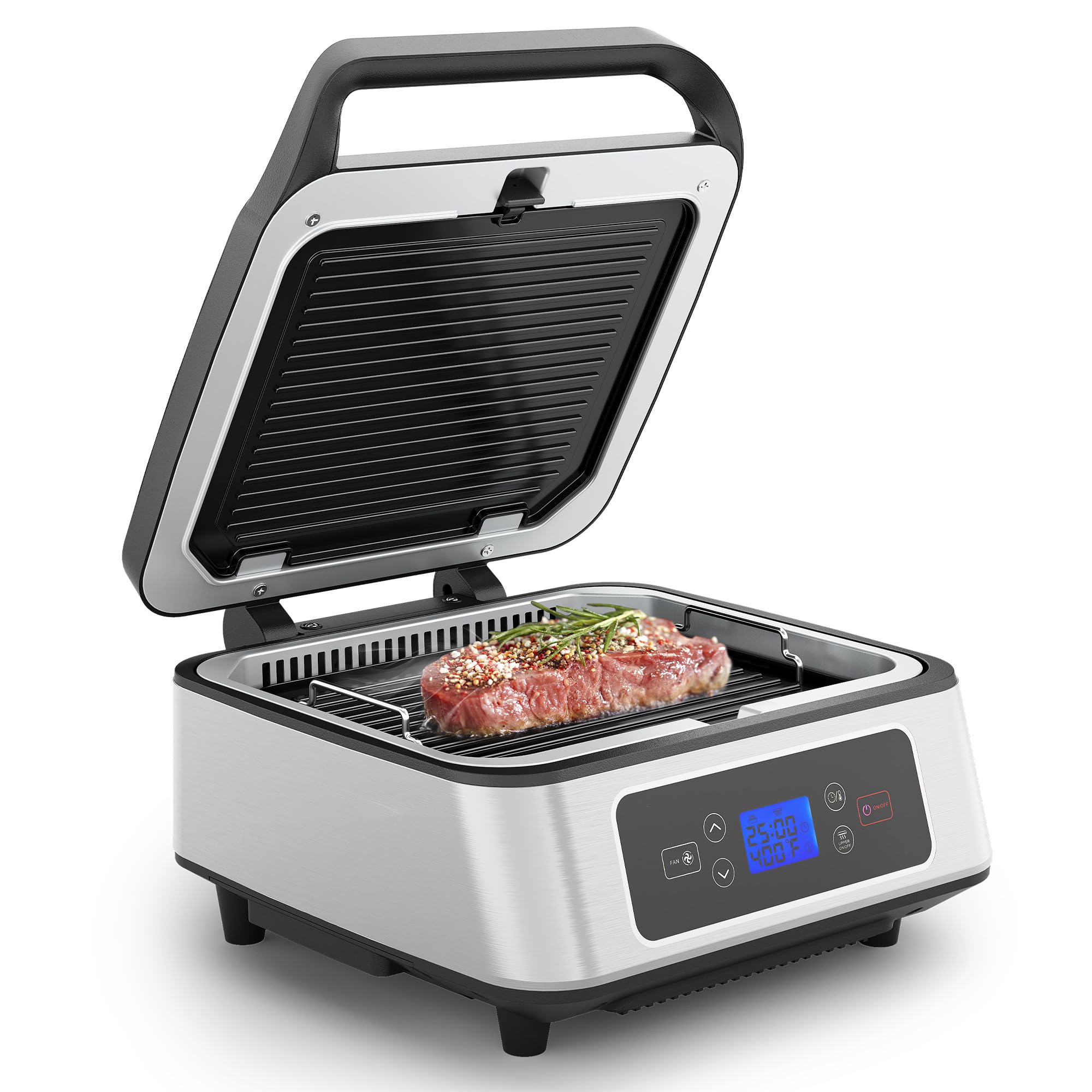 Parrilla eléctrica de prensa Panini de 2200 W con placas ranuradas antiadherentes, plancha para sándwich, control de temperatura a