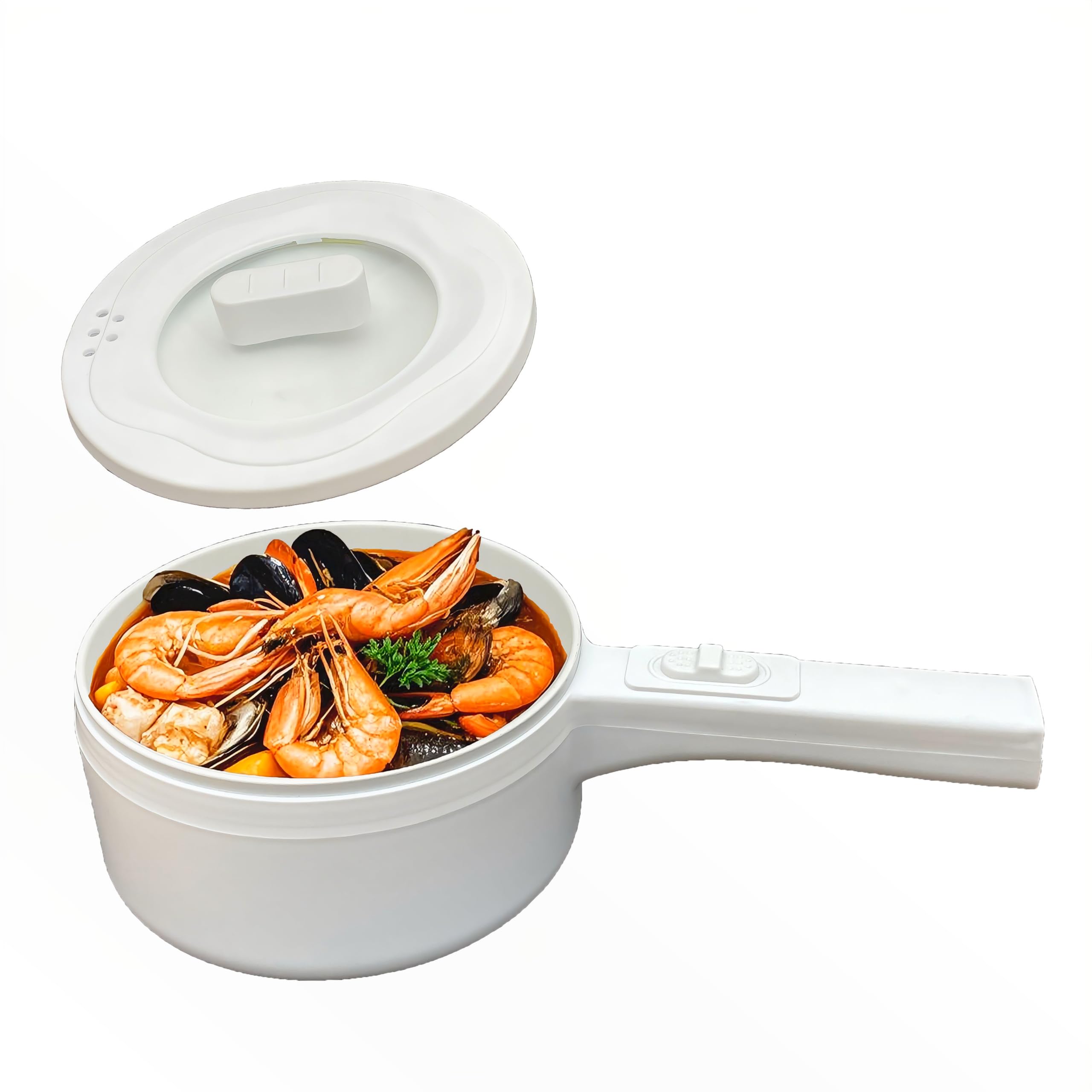 Olla eléctrica con vaporizador, mini cocina multifunción de 2.0 L, sartén antiadherente, control de temperatura ajustable, portáti