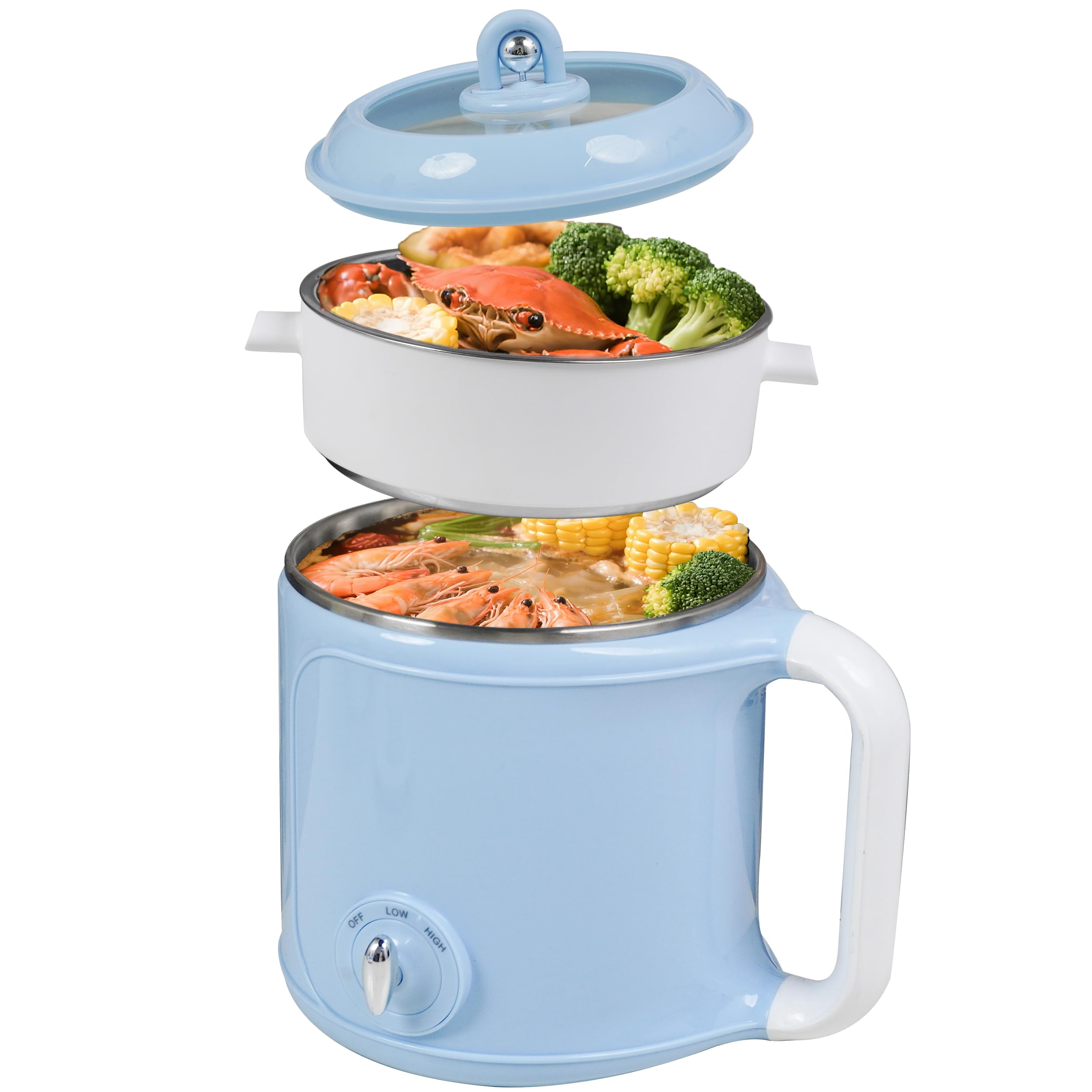 YOSOO Olla eléctrica de 450 W, olla caliente, mini olla eléctrica de 1.2 l, cocina rápida de fideos para huevos de ramen, pasta mu