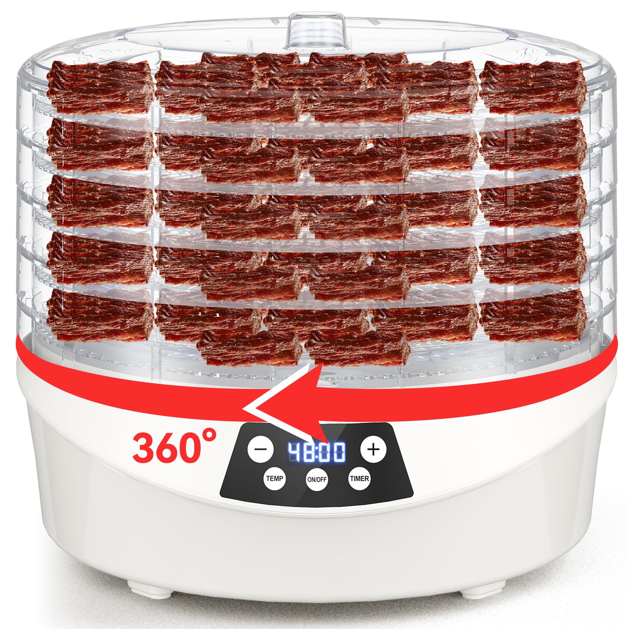 Deshidratador de alimentos con bandejas giratorias de 360°, 500 W para carne seca y frutas, temporizador de 48 horas y temperatura