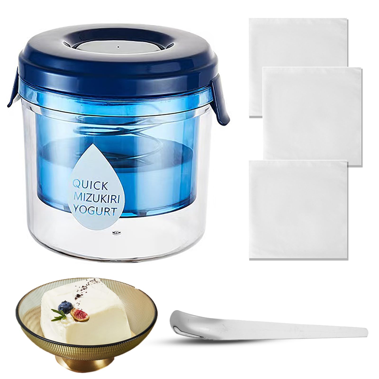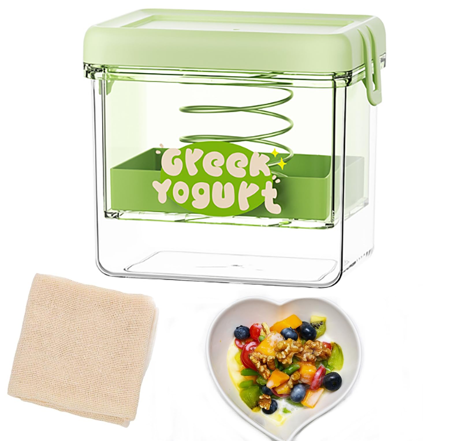 Colador de yogur griego con tapa, pequeño fabricante de yogur griego, filtro de yogur reutilizable con 3 paños coladores y 1 cucha