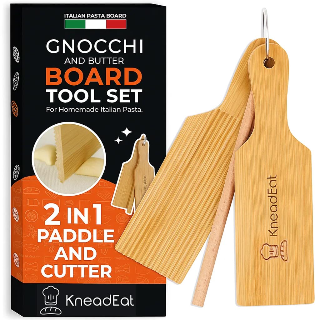 Juego de tabla de ñoquis y paleta de mantequilla, auténticas herramientas de rodillo de pasta de bambú para ñoquis, cavatelli, gar