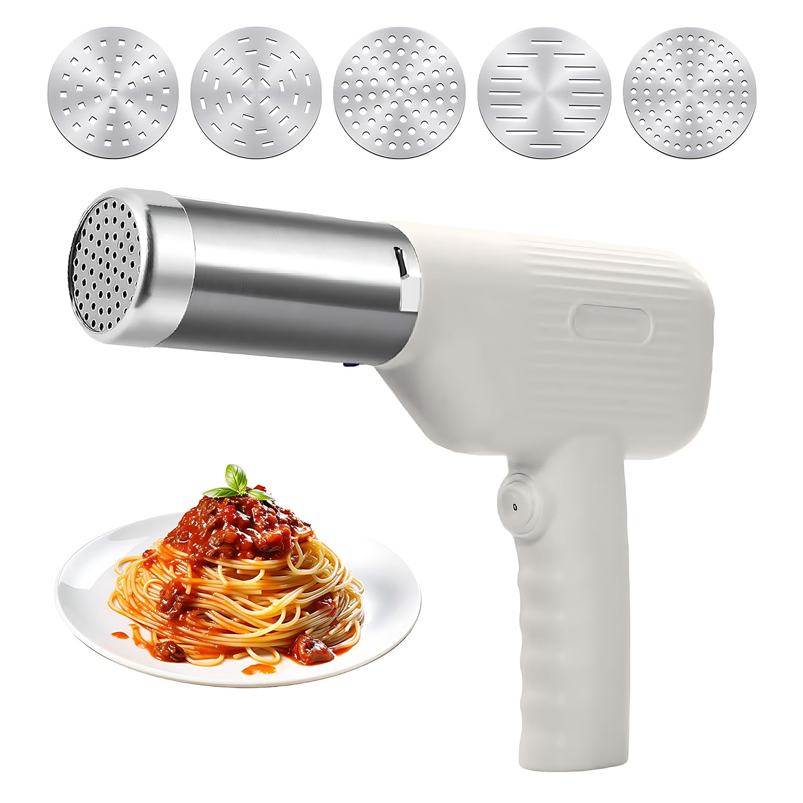 Yolispa Máquina de pasta eléctrica de mano, máquina automática 5 en 1, máquina de pasta casera portátil inalámbrica con moldes de