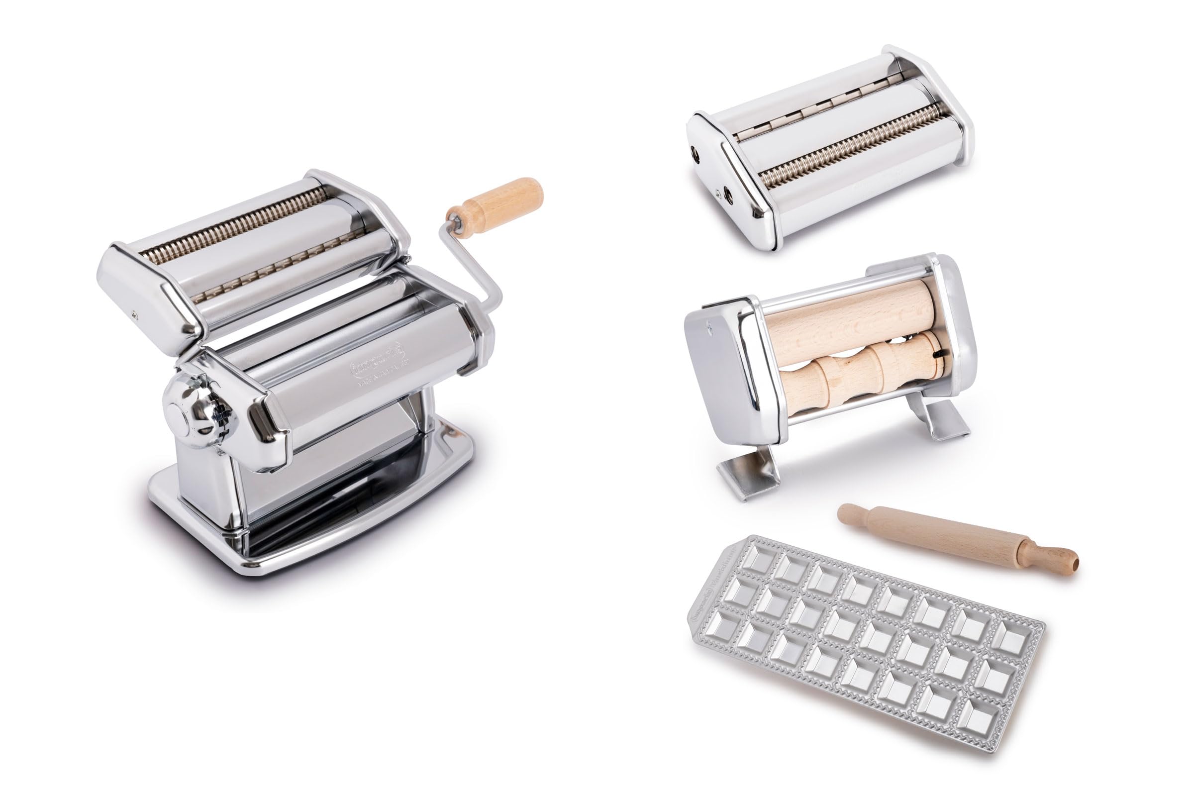 Máquina para hacer pasta, juego de 11 piezas de lujo con máquina, accesorios, recetas y accesorios, fabricado en Italia, hace auté