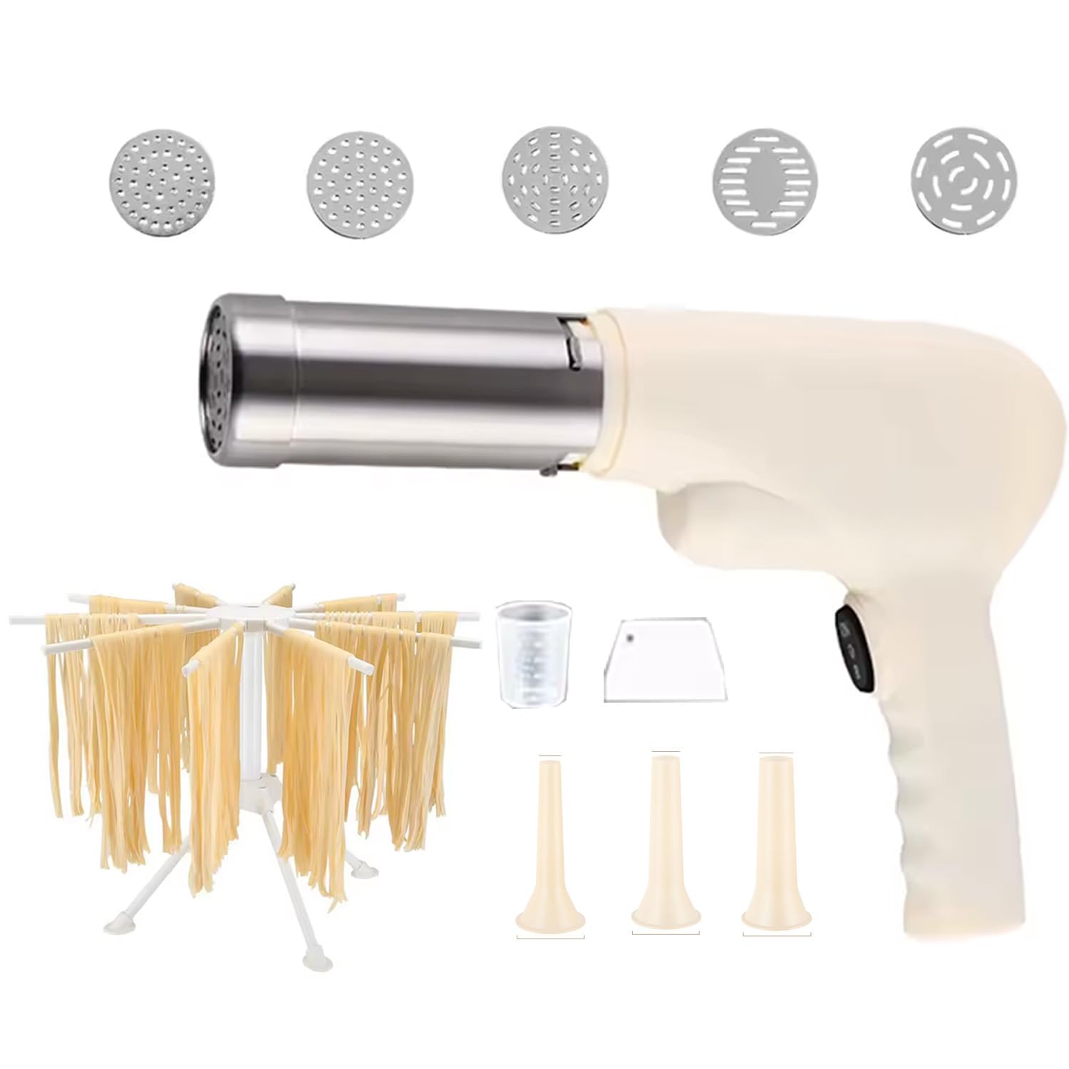 Máquina eléctrica para hacer pasta, pistola de pasta de mano para el hogar, 5 en 1, máquina de fideos caseros inalámbrica con 5 ti