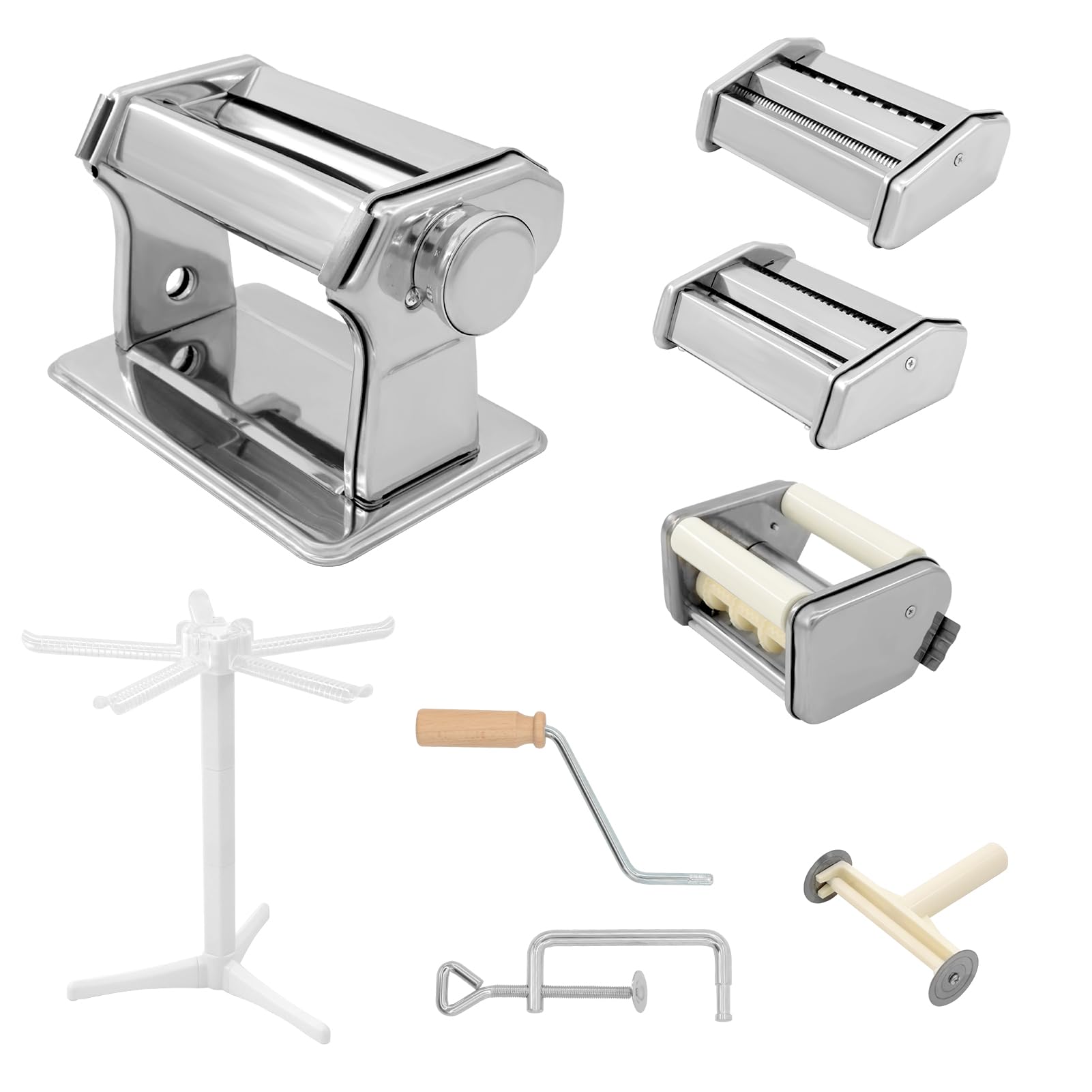 Máquina para hacer pasta desmontable 4 en 1, máquina de rodillos de pasta, 9 fideos de grosor ajustable y estante de secado de pas