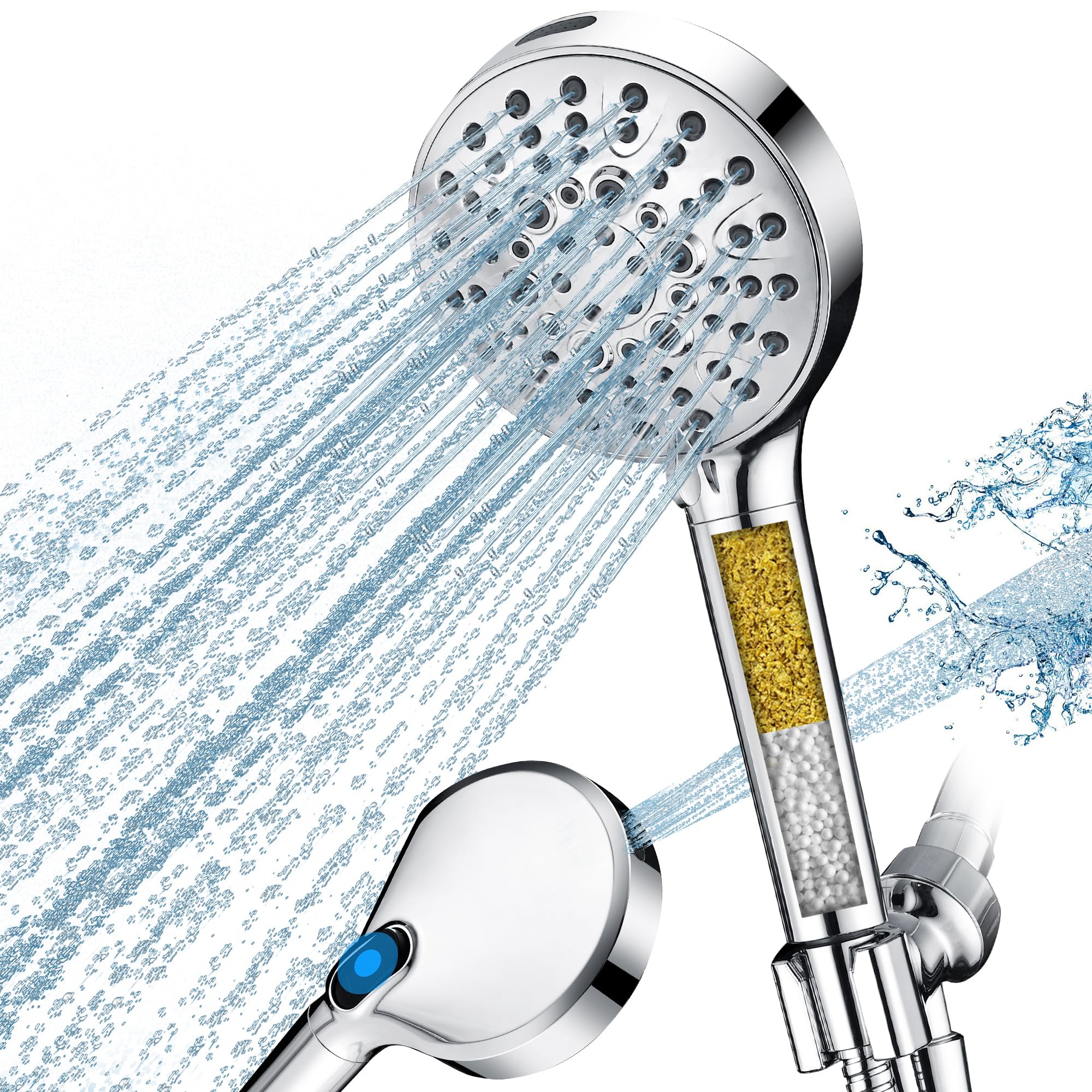 BRIGHT SHOWERS Cabezal de ducha filtrado con mano, cabezal de ducha de 9 modos de pulverización de alta presión con manguera larga