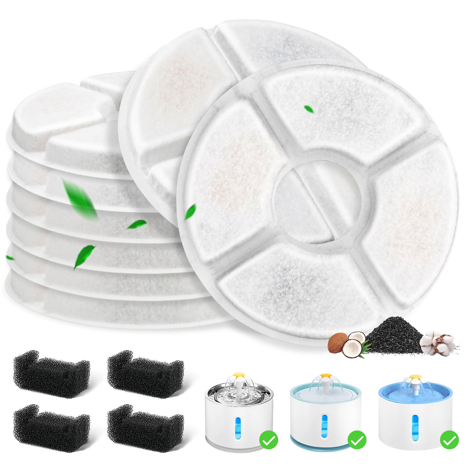 Paquete de 12 filtros de fuente de agua para gatos, 8 filtros de fuente para gatos de repuesto y 4 esponjas de prefiltro para disp
