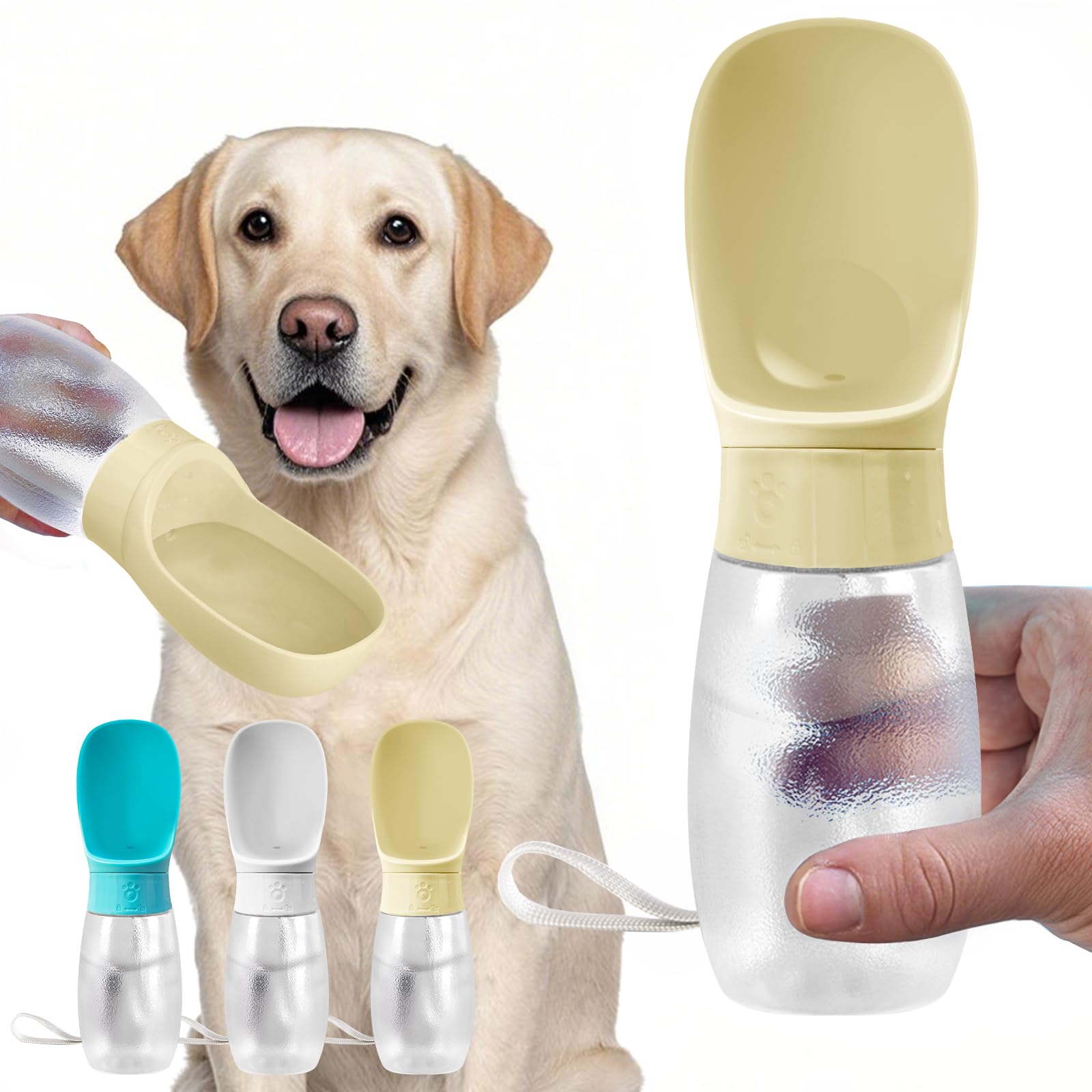 Kalimdor Botella de agua para perros, dispensador de agua portátil de 12 onzas a prueba de fugas para cachorros con alimentador pa