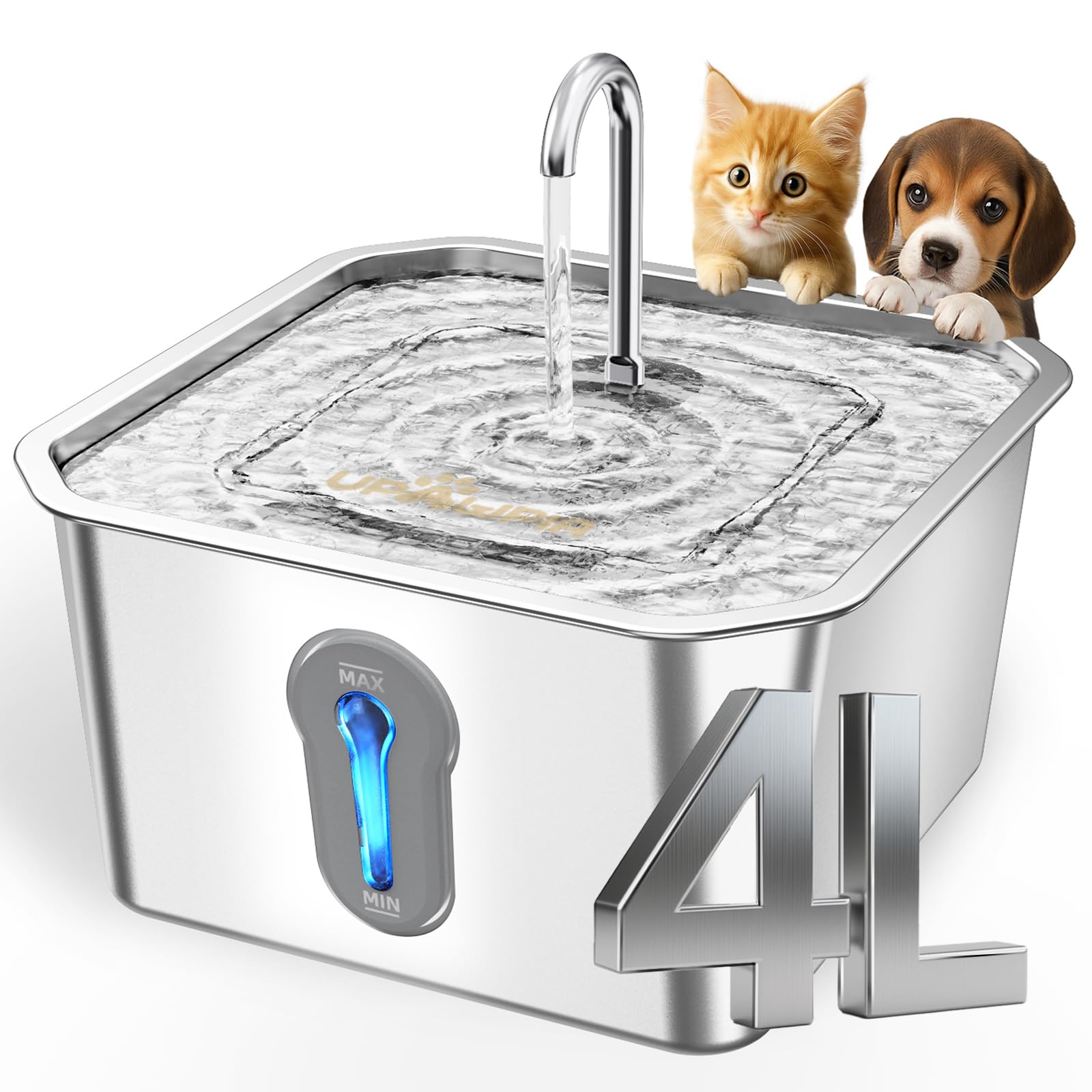 Fuente de agua para gatos de acero inoxidable de 135 oz/4 L, fuente de agua para mascotas, mascotas, perros, animales pequeños, di