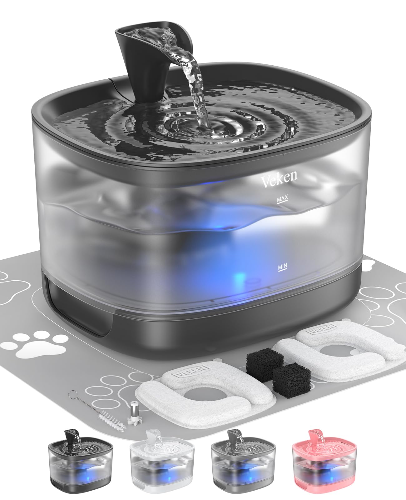Veken Fuente de agua para gatos con tanque desmontable, fácil de limpiar y montar, dispensador automático de bebidas para mascotas