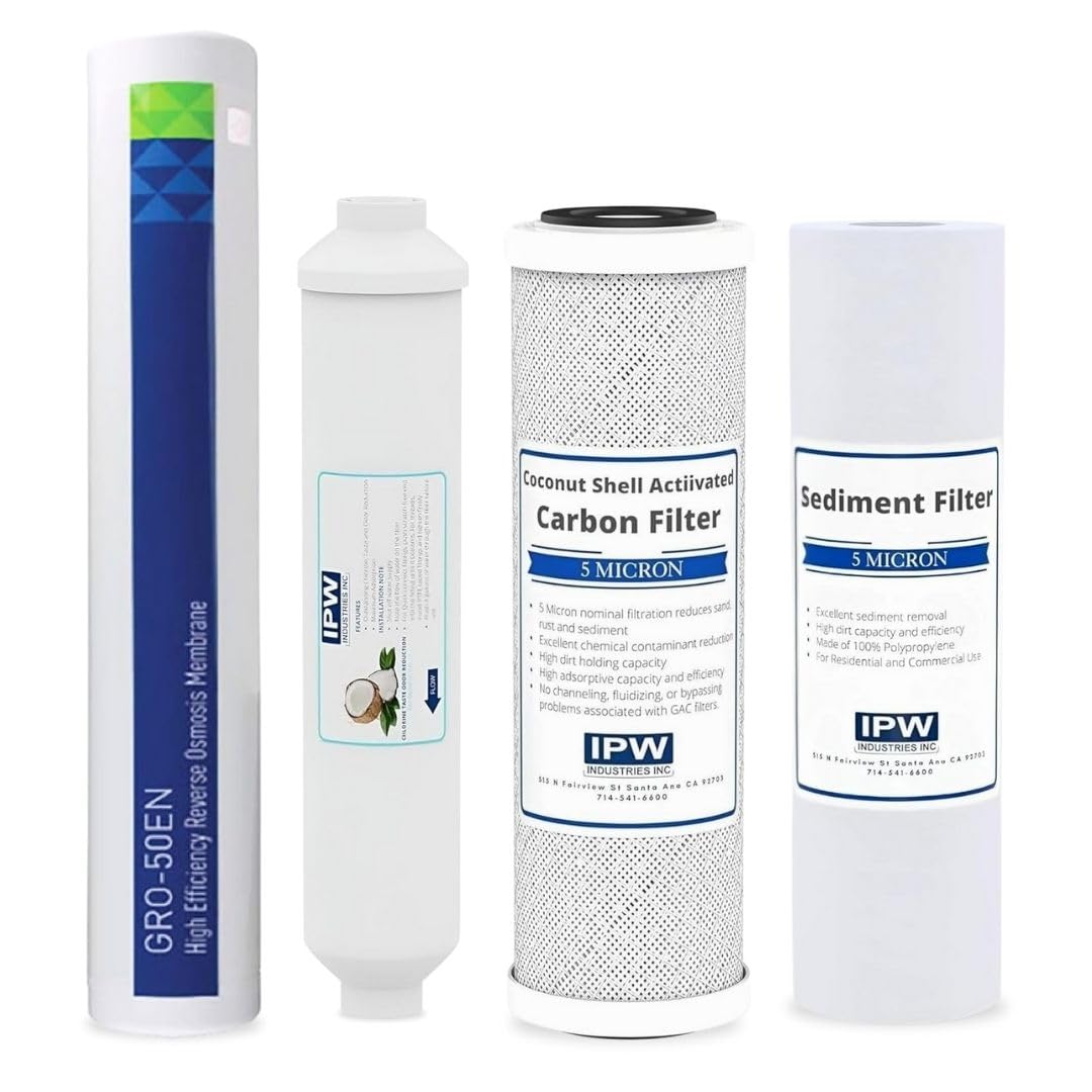 IPW Industries Inc. – Filtros de agua de repuesto para ósmosis inversa (RO) de 4 etapas Pentair (GRO-25504) – Conexión rápida de 3