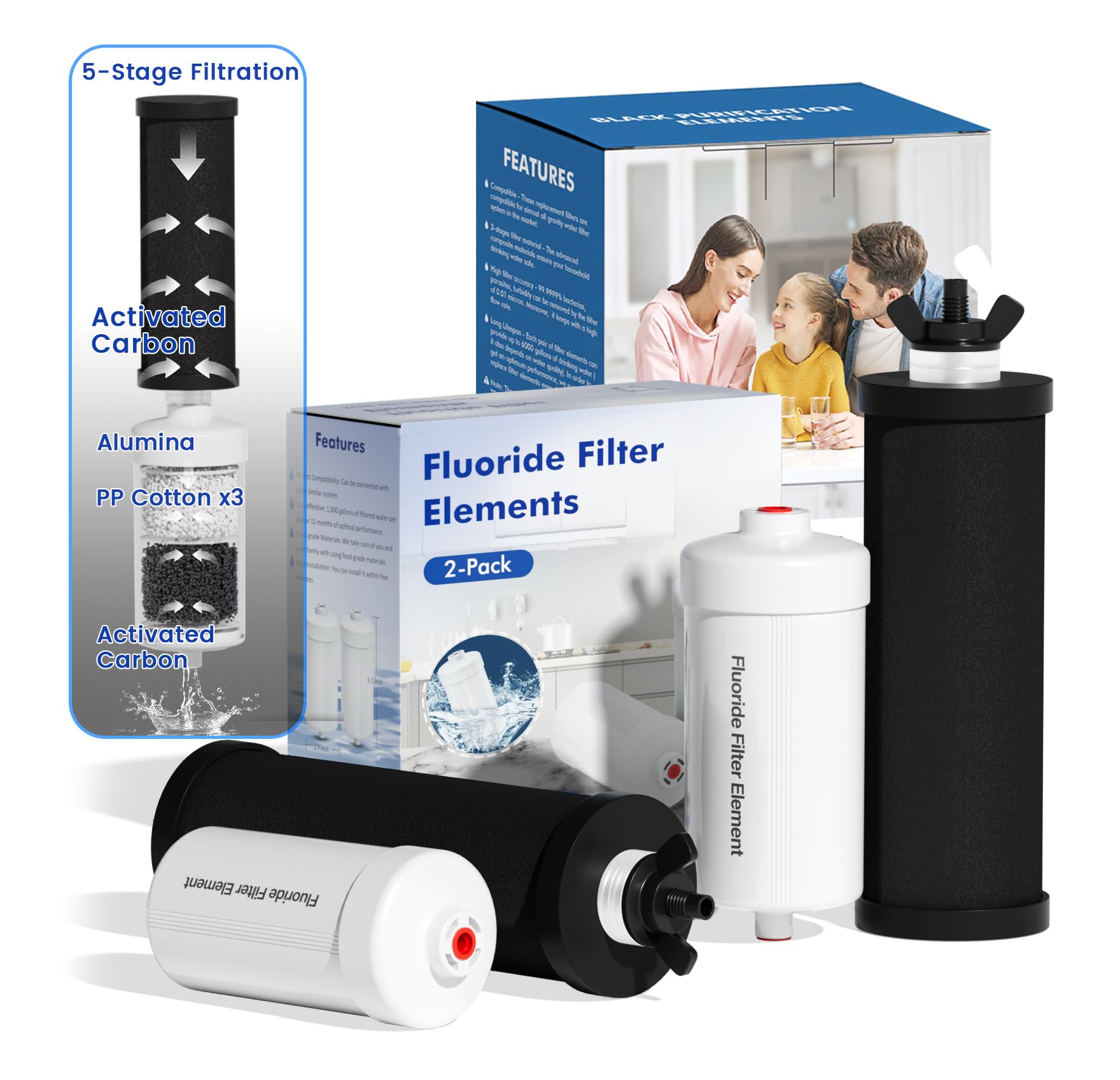 Filtro de agua de purificación de repuesto, repuesto para filtros Berkey BB9-2 negros y filtros de fluoruro (PF-2), paquete combin