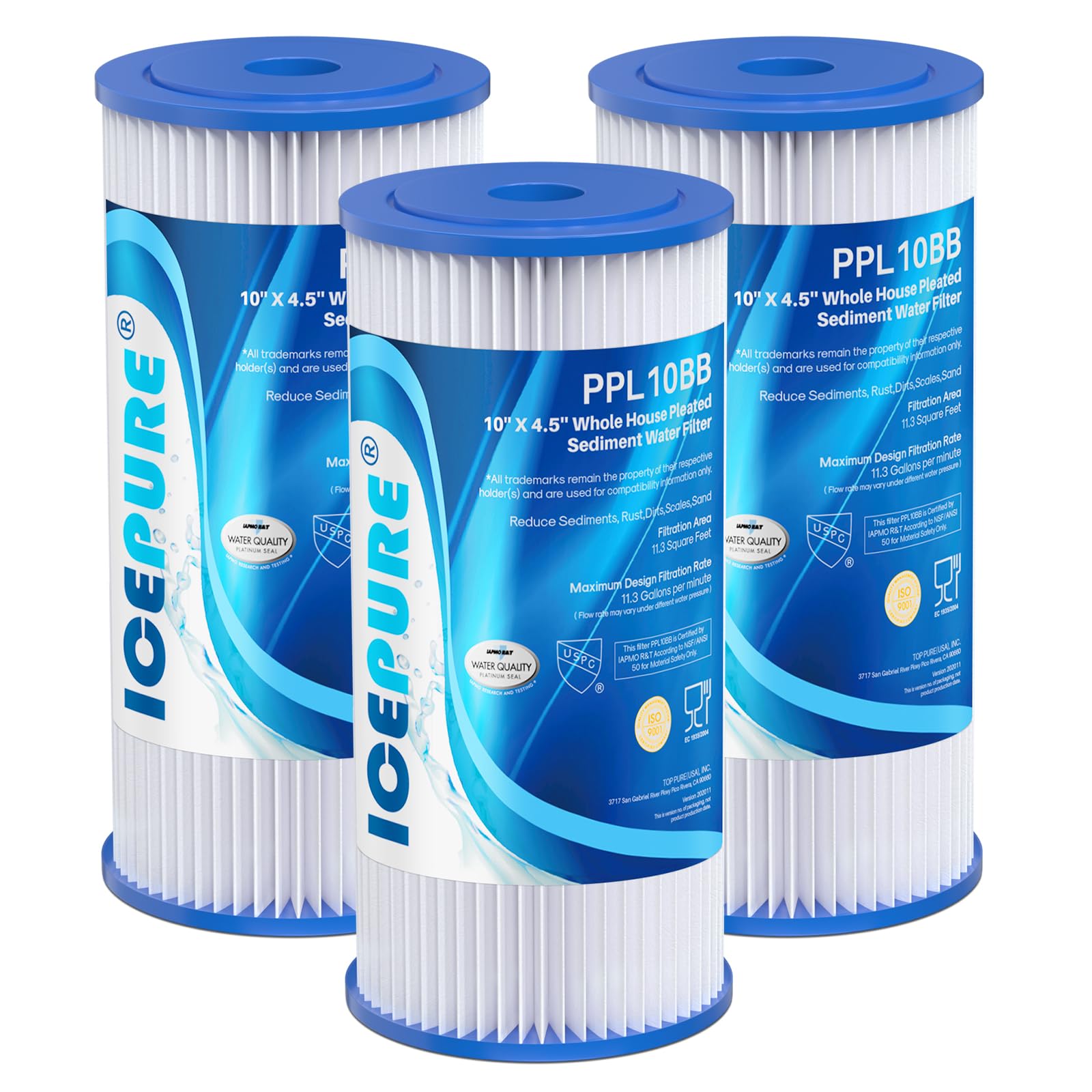 ICEPURE Filtro de agua plisado de sedimento de 20 micrones de 10 x 4.5 pulgadas para toda la casa para GE FXHSC, Culligan R50-BBSA