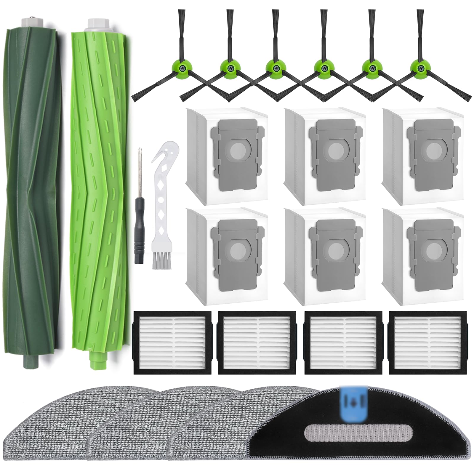 Paquete de 24 piezas de repuesto para iRobot Roomba Combo i5, i5+, j5, j5+, i3+ kit de accesorios de aspiradora, 2 cepillos princi