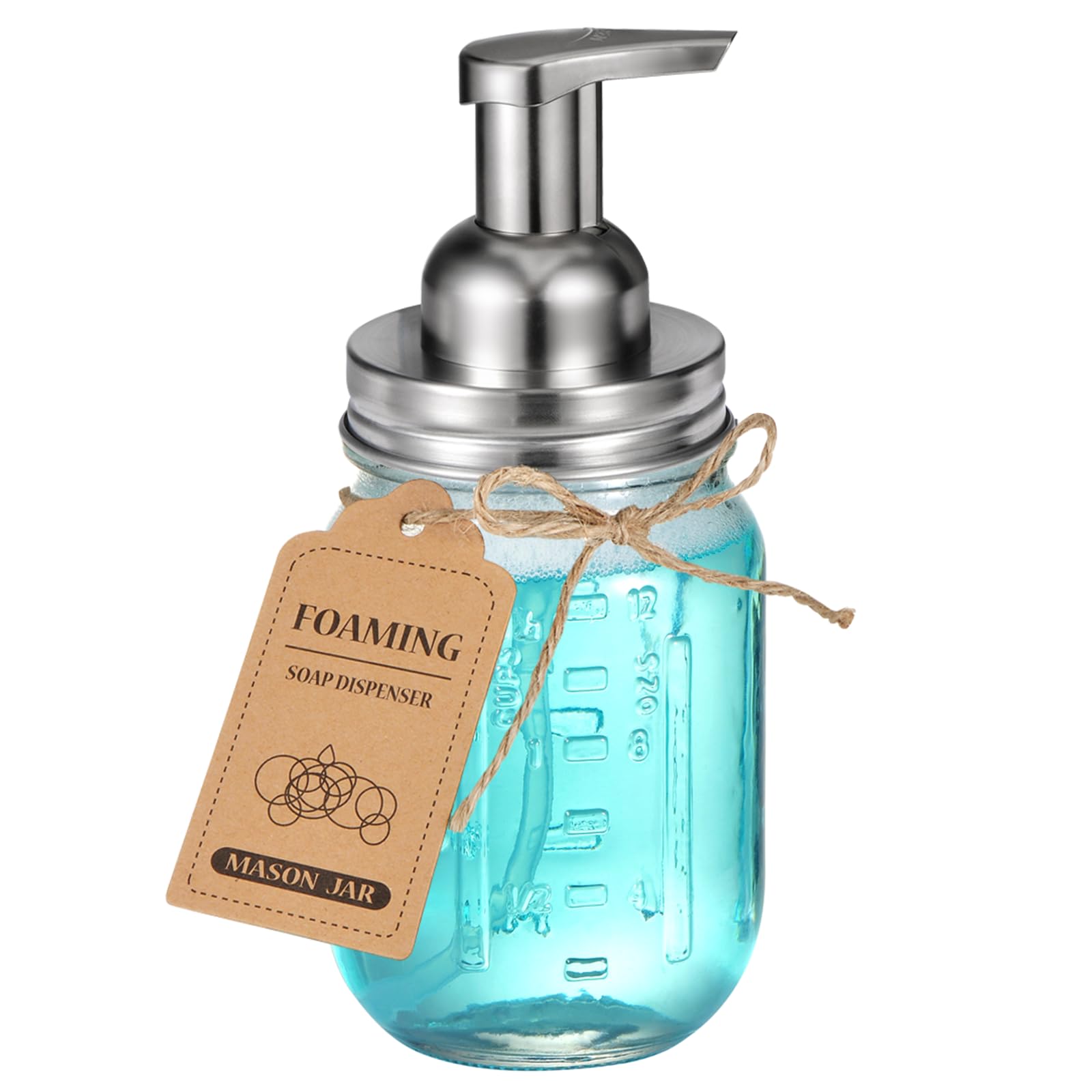 Amolliar Dispensador de jabón espumoso en tarro de masón, bomba de jabón de plástico, dispensador de jabón de manos recargable par