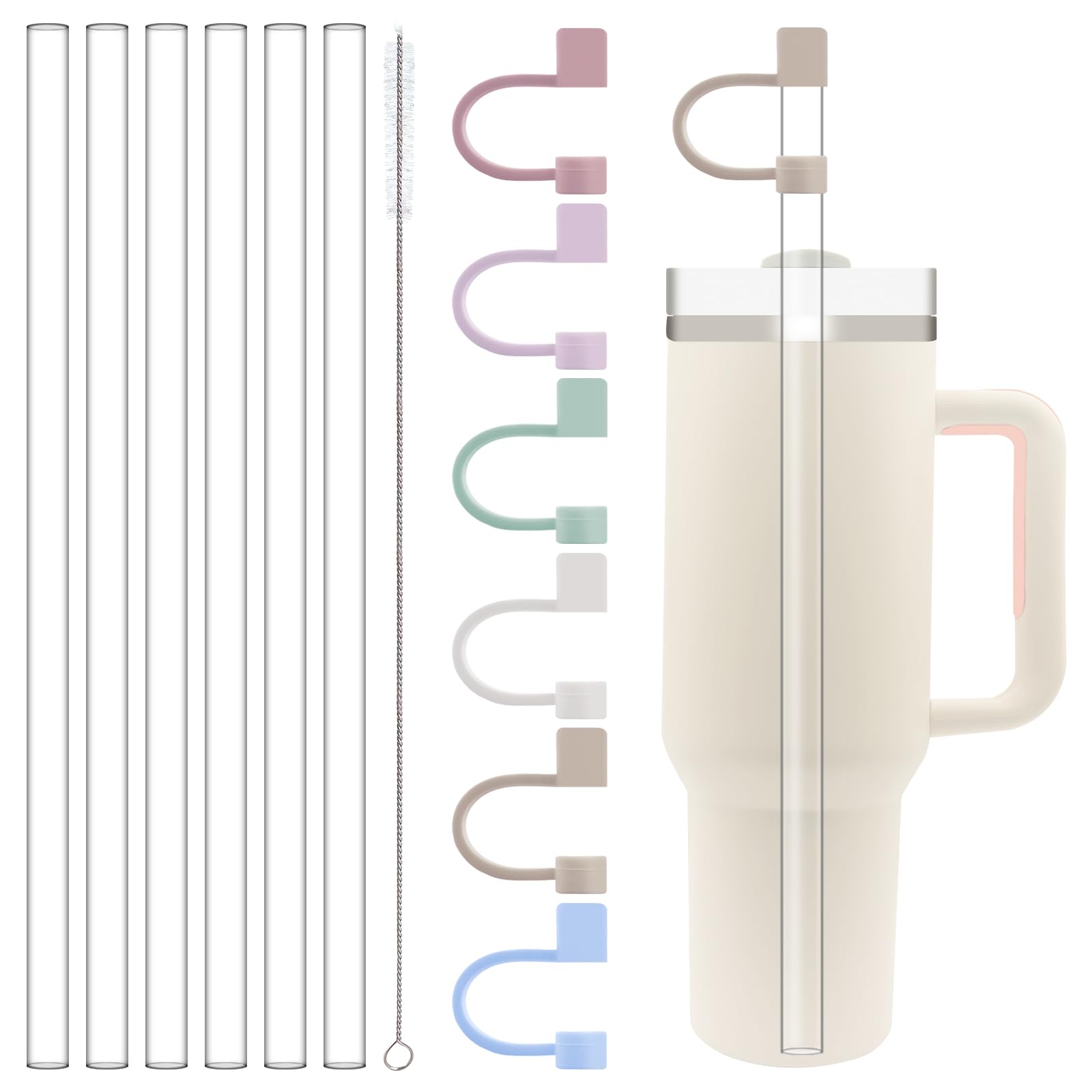 Popote de repuesto transparente con fundas compatibles con vaso Stanley de 40 onzas y 30 onzas, popote reutilizable con cepillo de