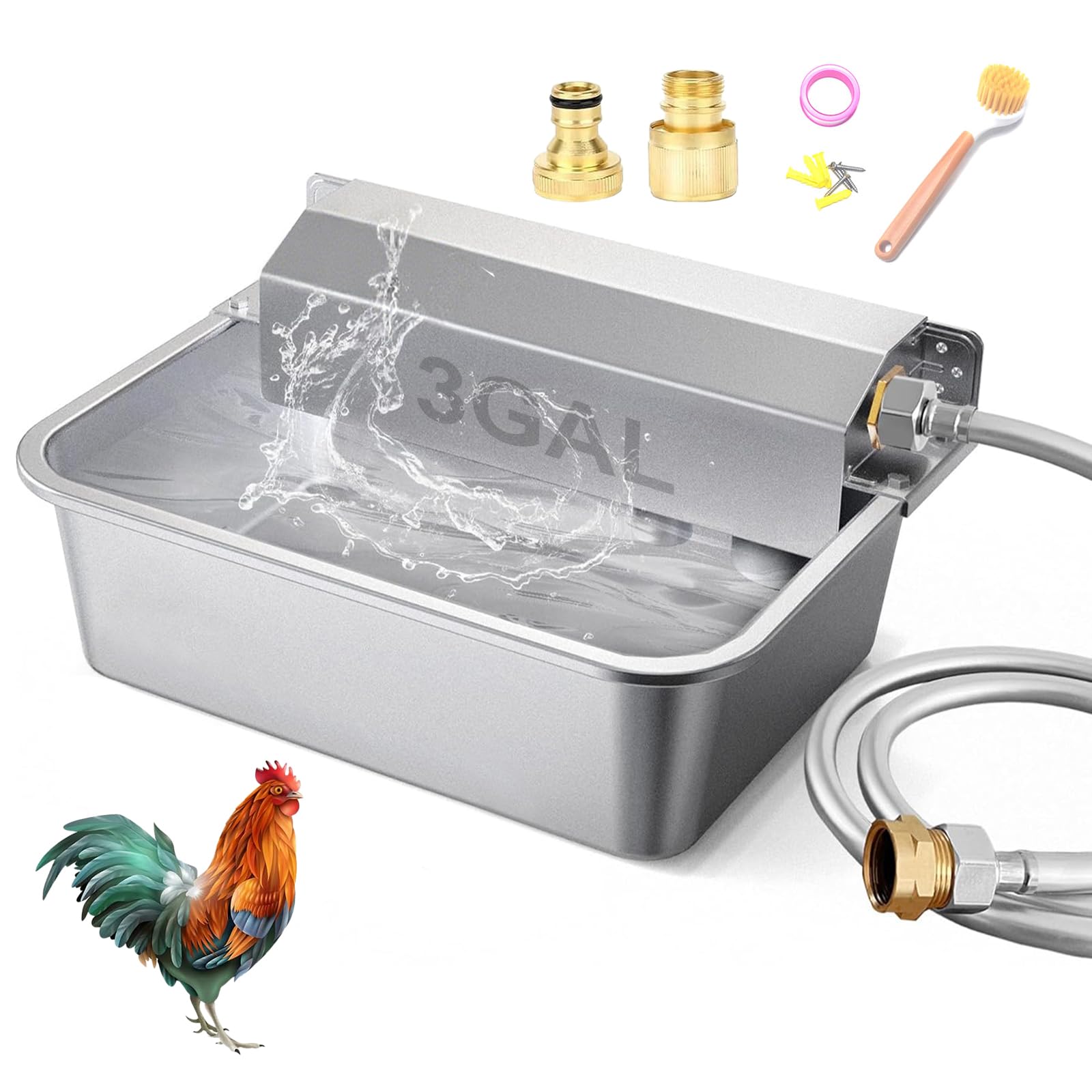 Automatic Chicken Water Dispenser Large 304 Stainless Steel Duck Waterer Outdoor Heavy-Duty Self Refilling Watering System with In