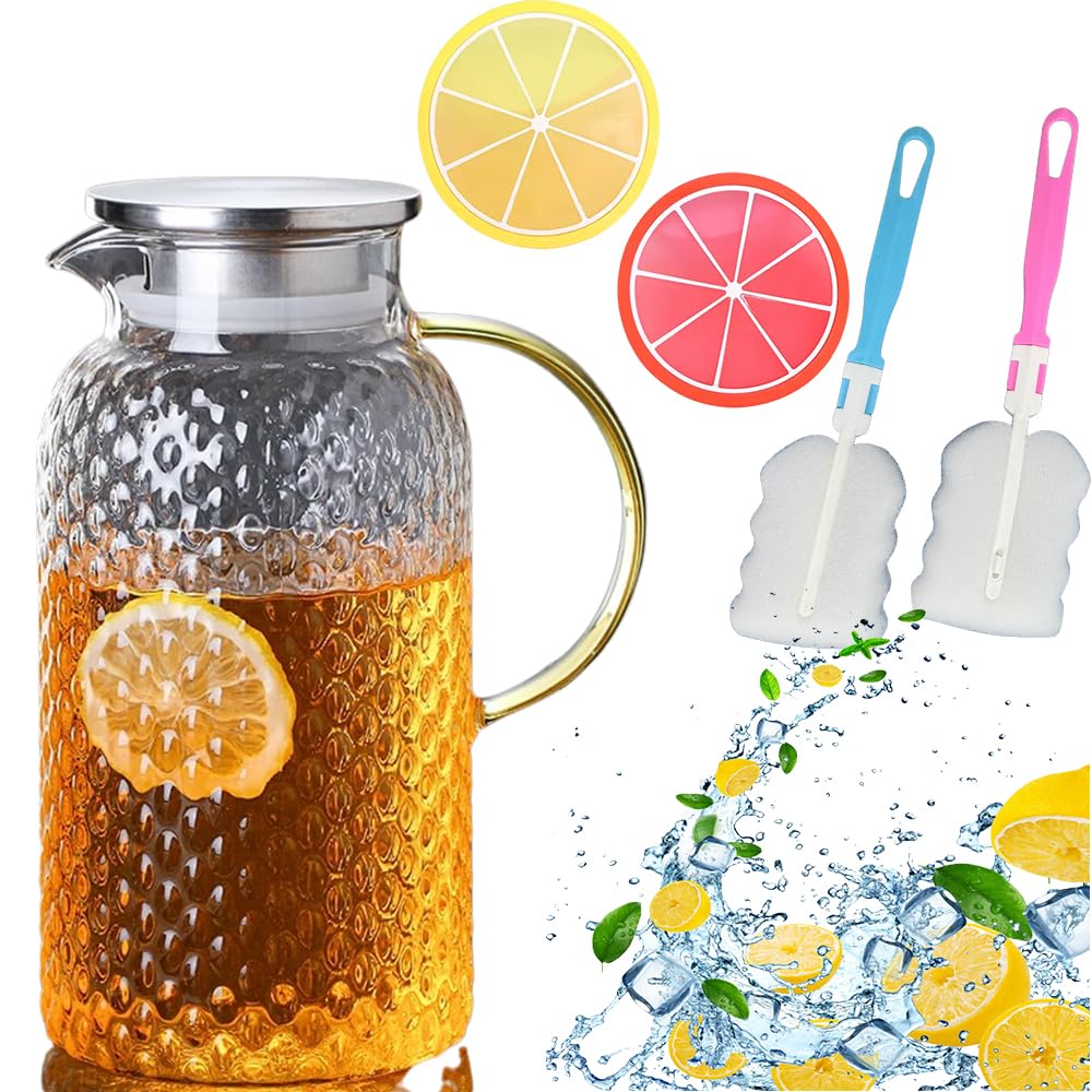 Water Jugs 1.8 Liter 61 oz Glass Pitcher with Lid and Spout, Fycooler Glass Carafe for Hot/Cold Water,Large Iced Tea Pitcher for C