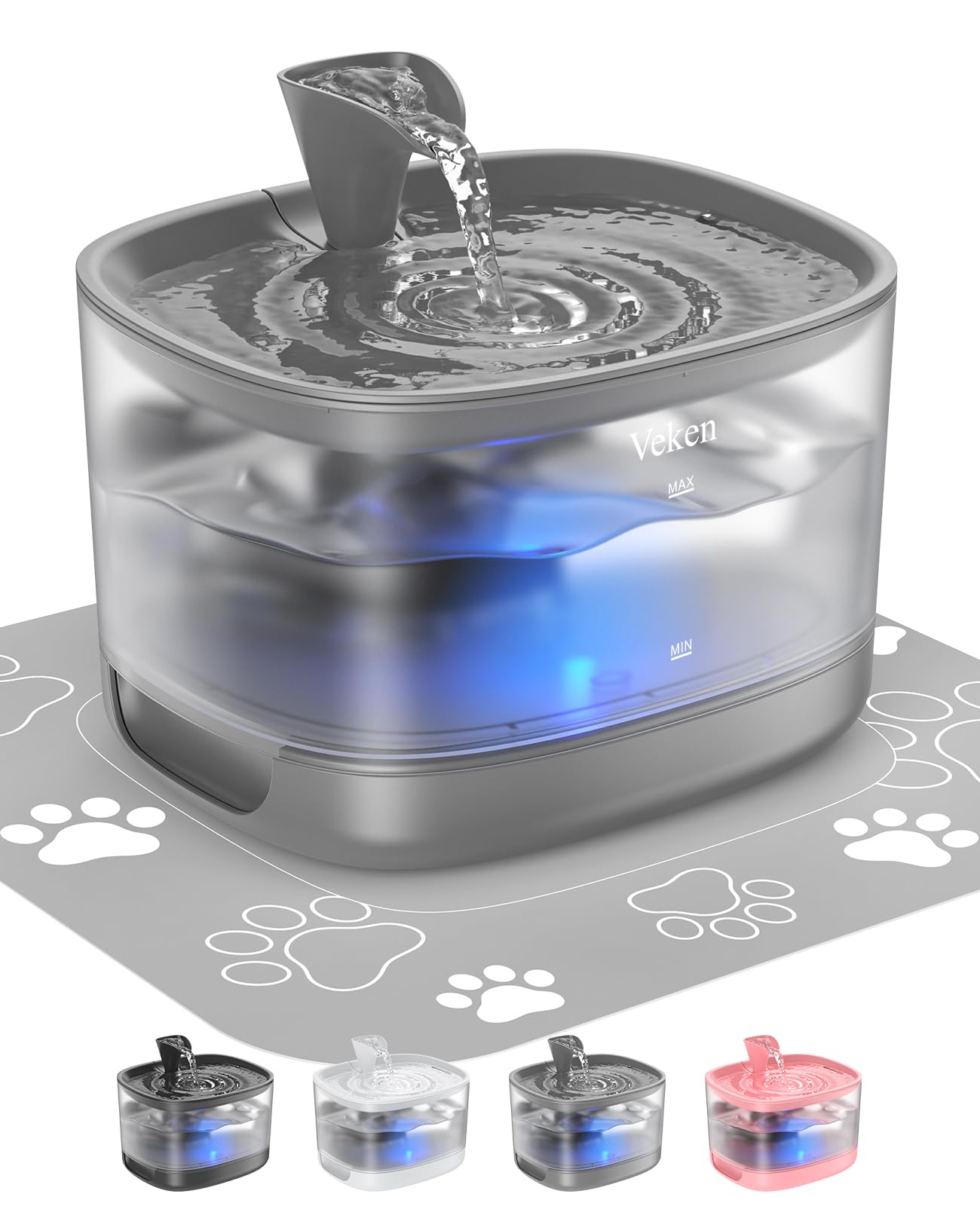 Veken Fuente para mascotas S3V3 desmontable 85oz gris