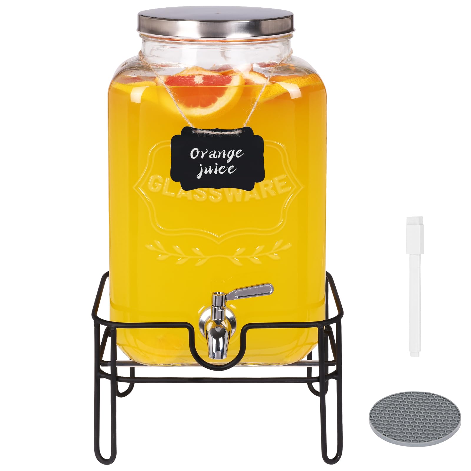 Moretoes Dispensador de bebidas de vidrio para fiestas, dispensador de bebidas de 2 galones con soporte para jugo y té helado, dis