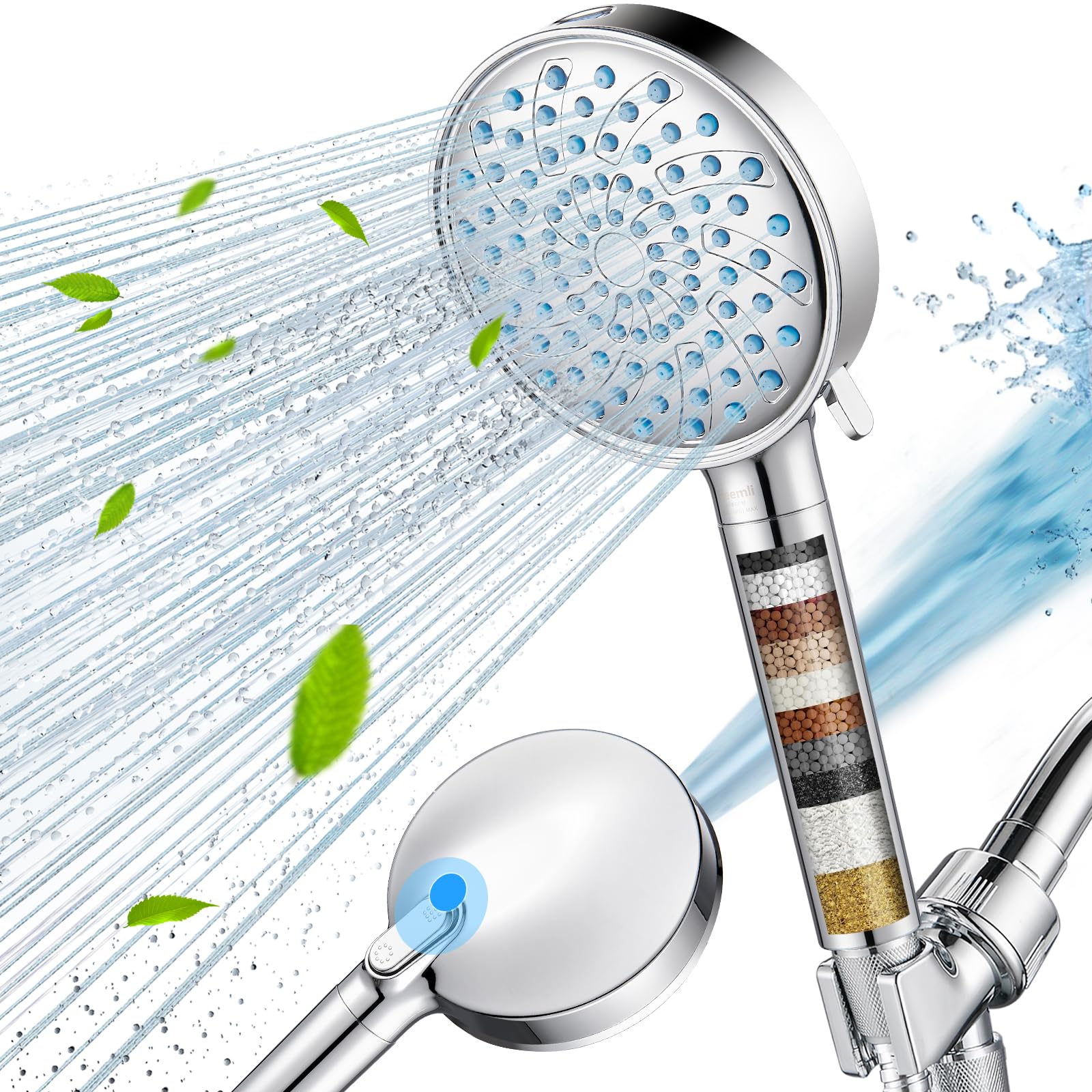 Cabezal de ducha filtrado con portátil, cabezal de ducha de alta presión con 7 modos de pulverización con filtros, filtros suaviza