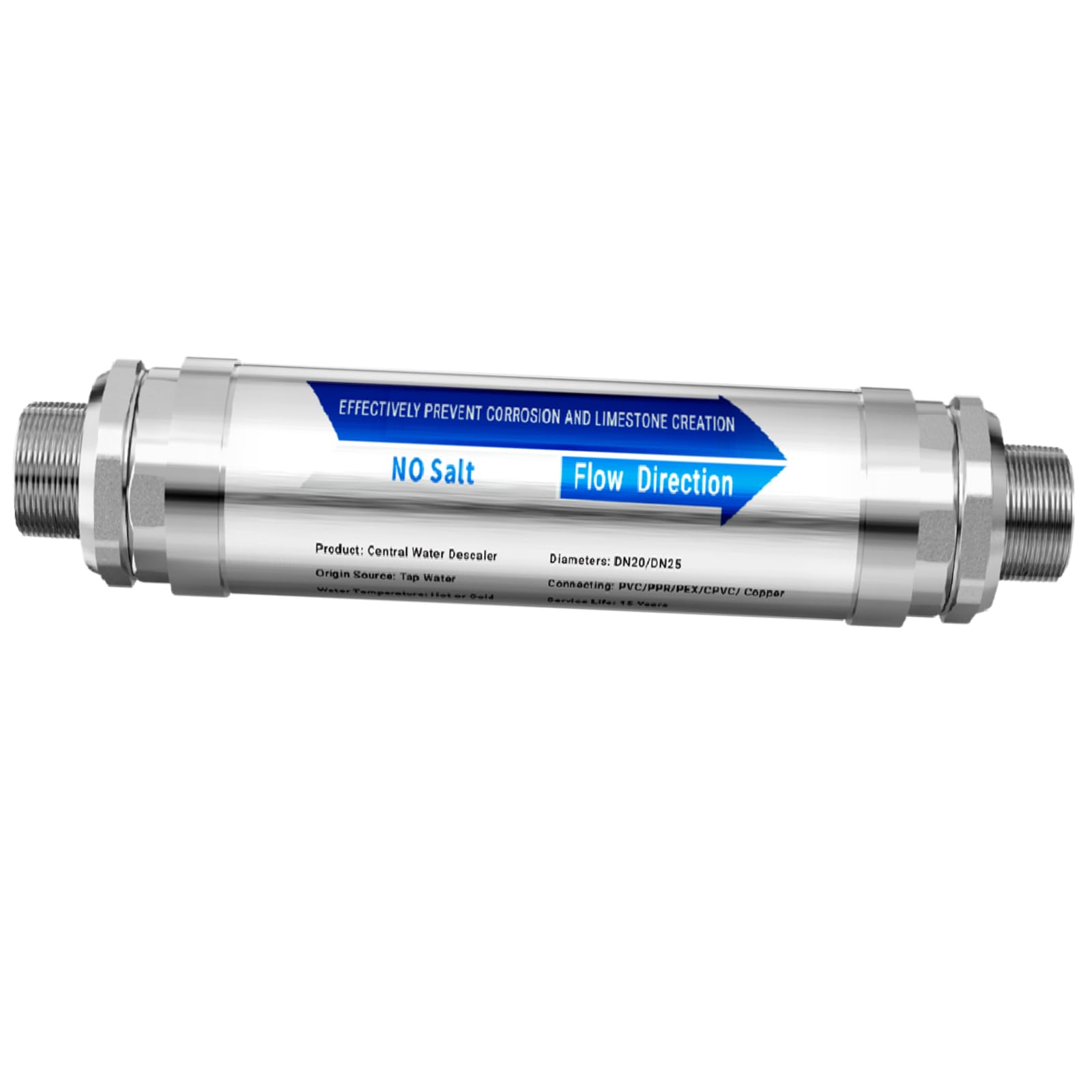 Descalcificador de calentador de agua sin sal para toda la casa, acondicionador de agua dura sin sal, sistema de prevención de sua