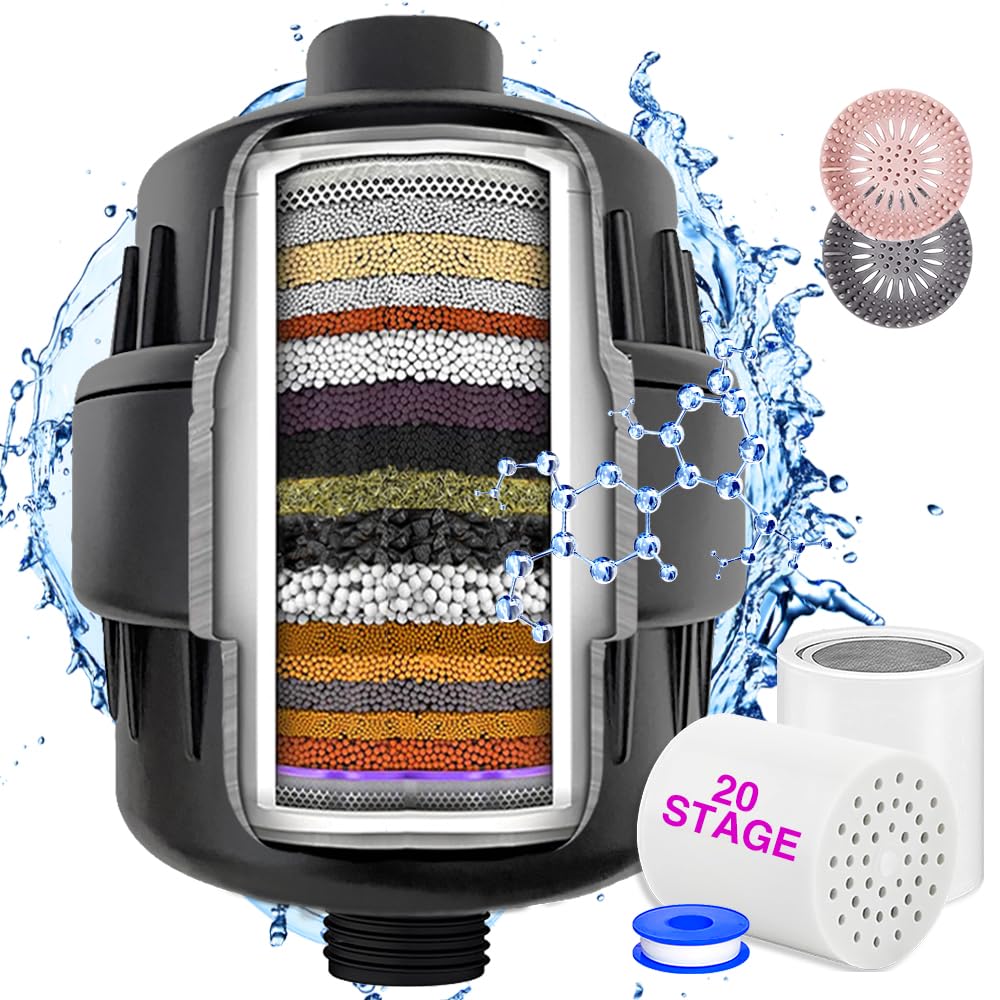 Filtro de cabezal de ducha de 20 etapas para agua dura, suavizante de agua de alto rendimiento con 2 cartuchos reemplazables, redu