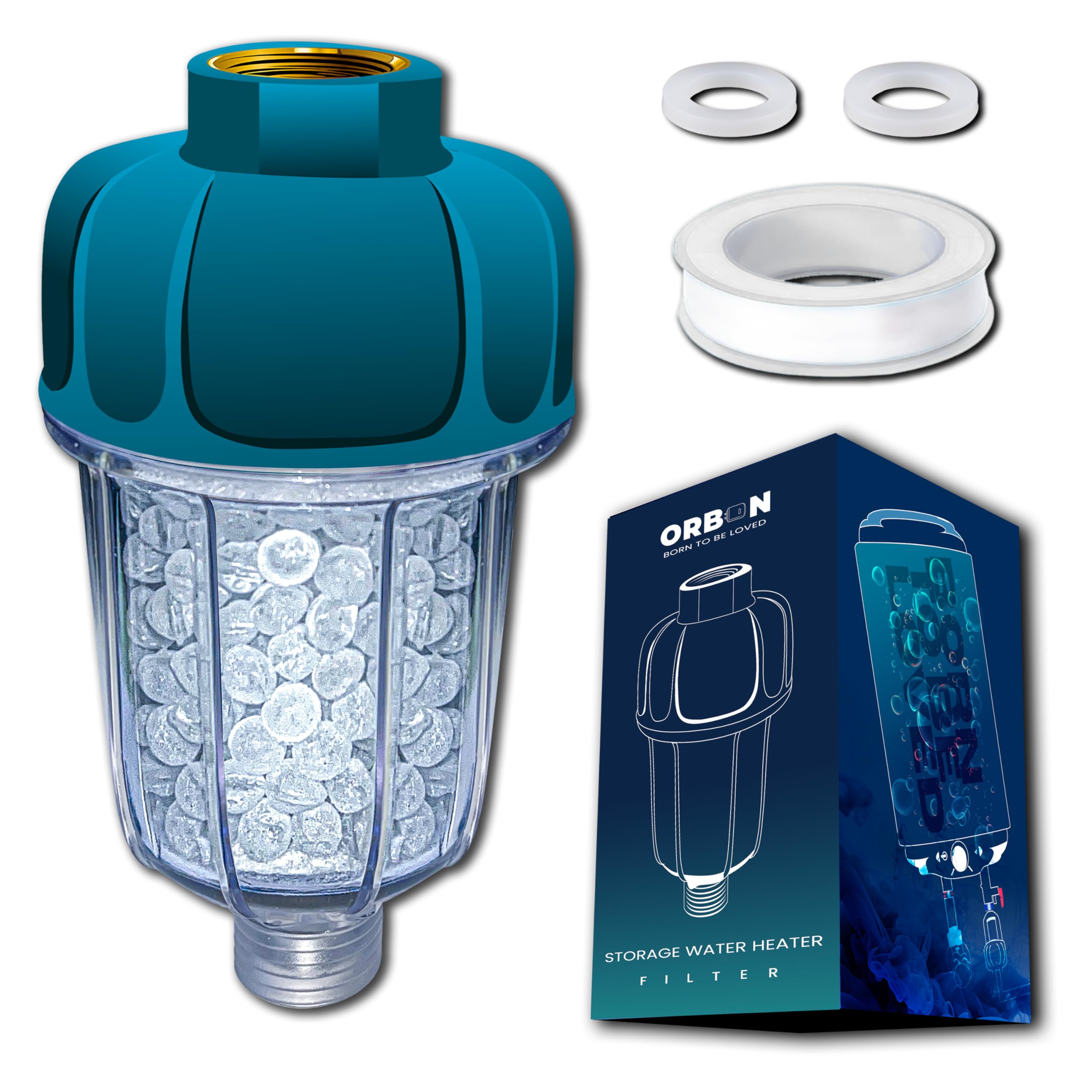 Suavizante de agua géiser con bolas de resina de cristal, filtro de agua dura para entrada de géiser, calentador de agua de baño,