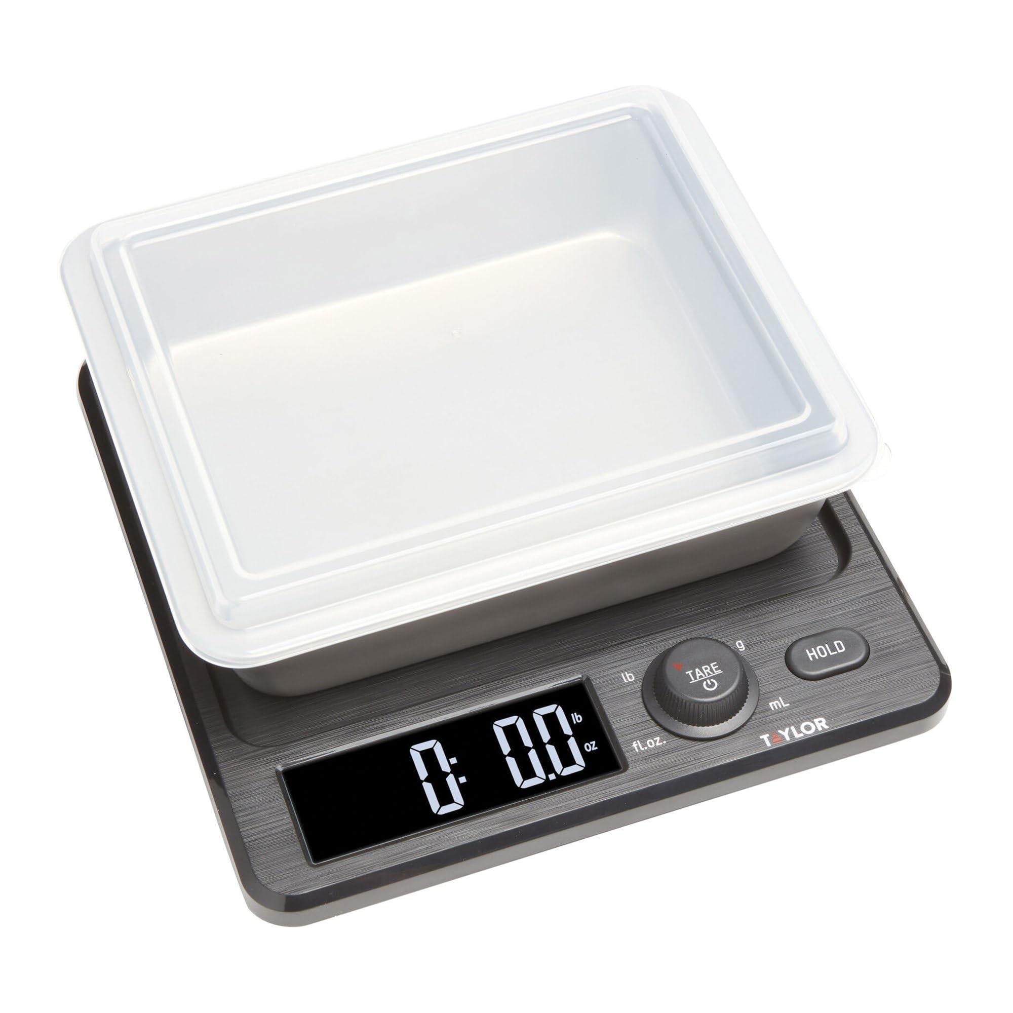 Taylor Báscula digital de cocina con recipiente de acero inoxidable apto para lavavajillas y cierre a presión, capacidad de 22 lib