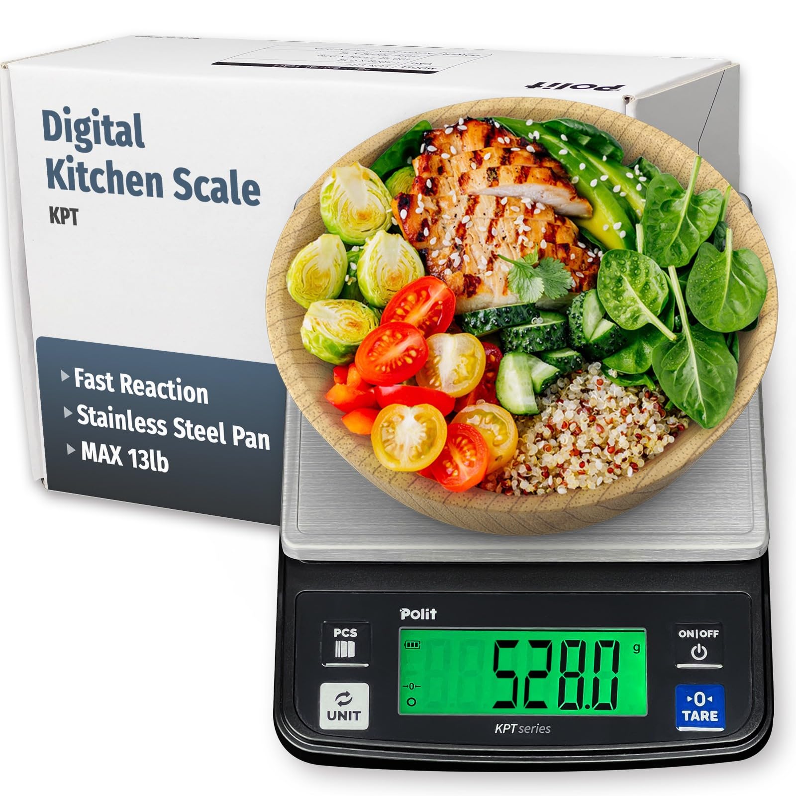 Polit Báscula digital de cocina KPT de 13 libras/13.2 lbs|0.5 g/0.02 oz báscula de precisión para alimentos con pantalla LCD, part