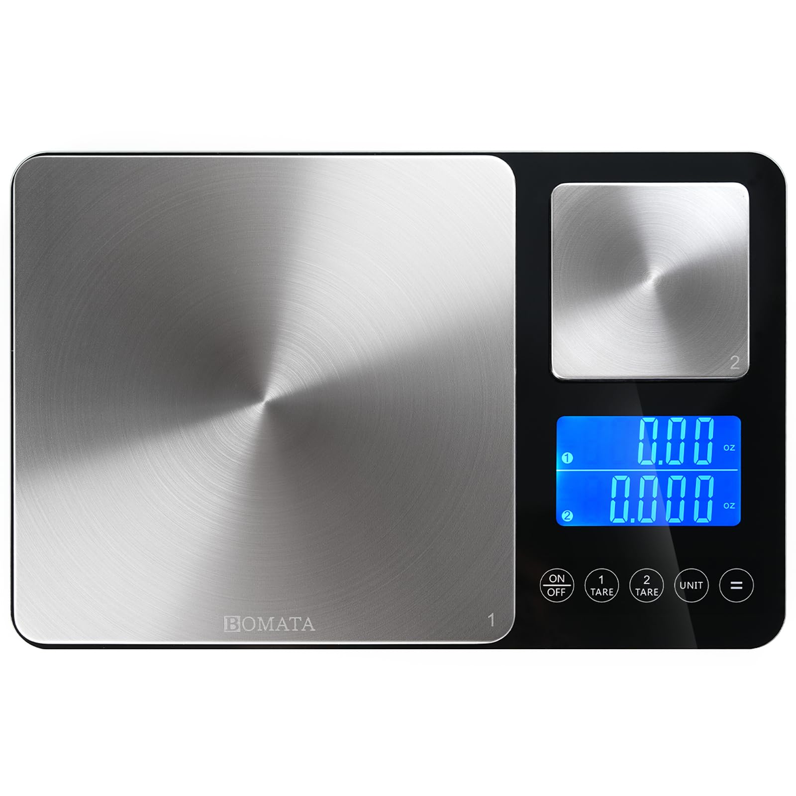BOMATA B615 – Báscula de cocina de doble plataforma de 0.00 oz/17.64 oz y 0.04 oz/33.1 lbs con dos precisiones, función de acumula