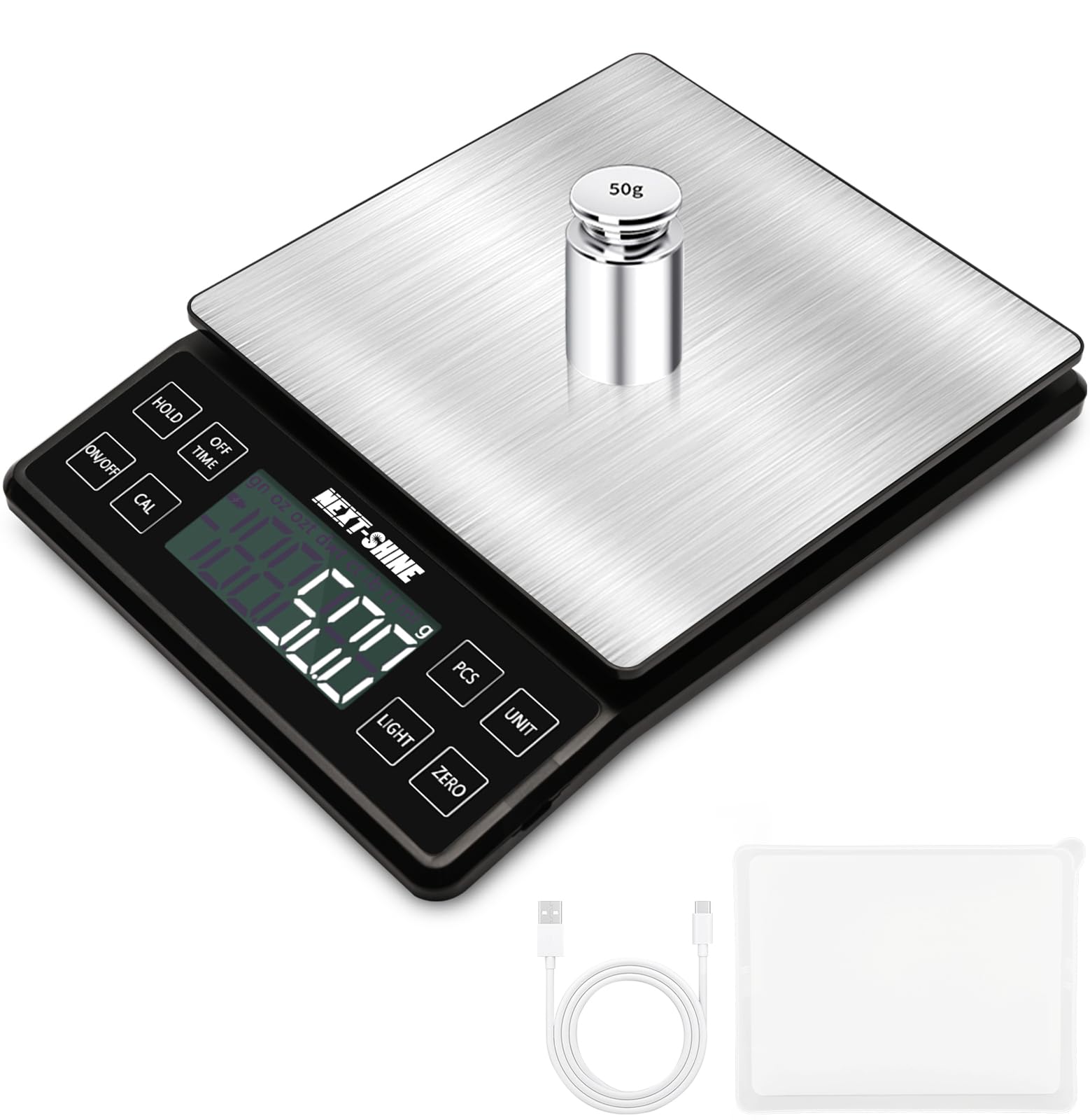 NEXT-SHINE Báscula de alimentos de cocina – 11 lb/5 kg, recargable digital gramos y onzas para cocinar, hornear, preparar comidas,