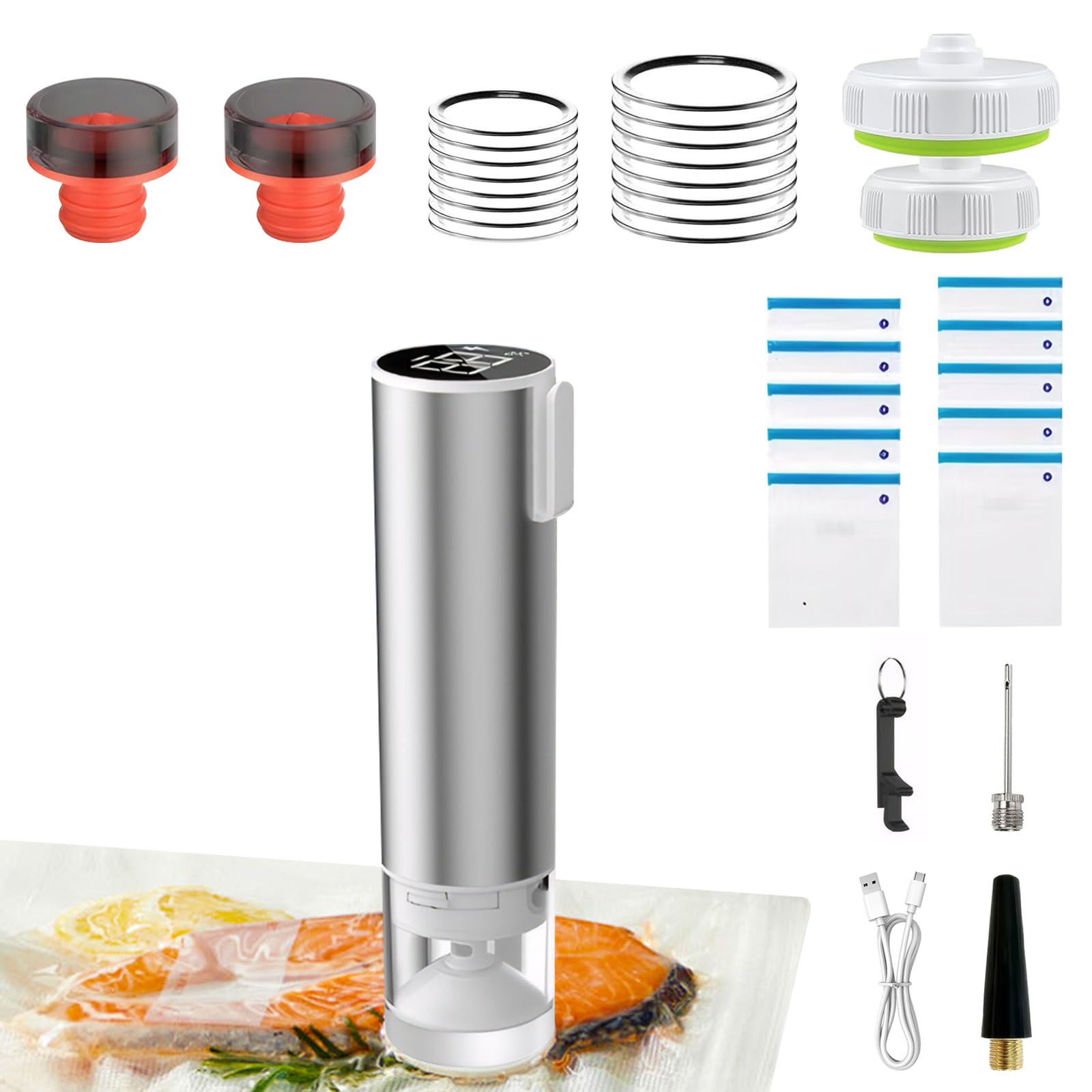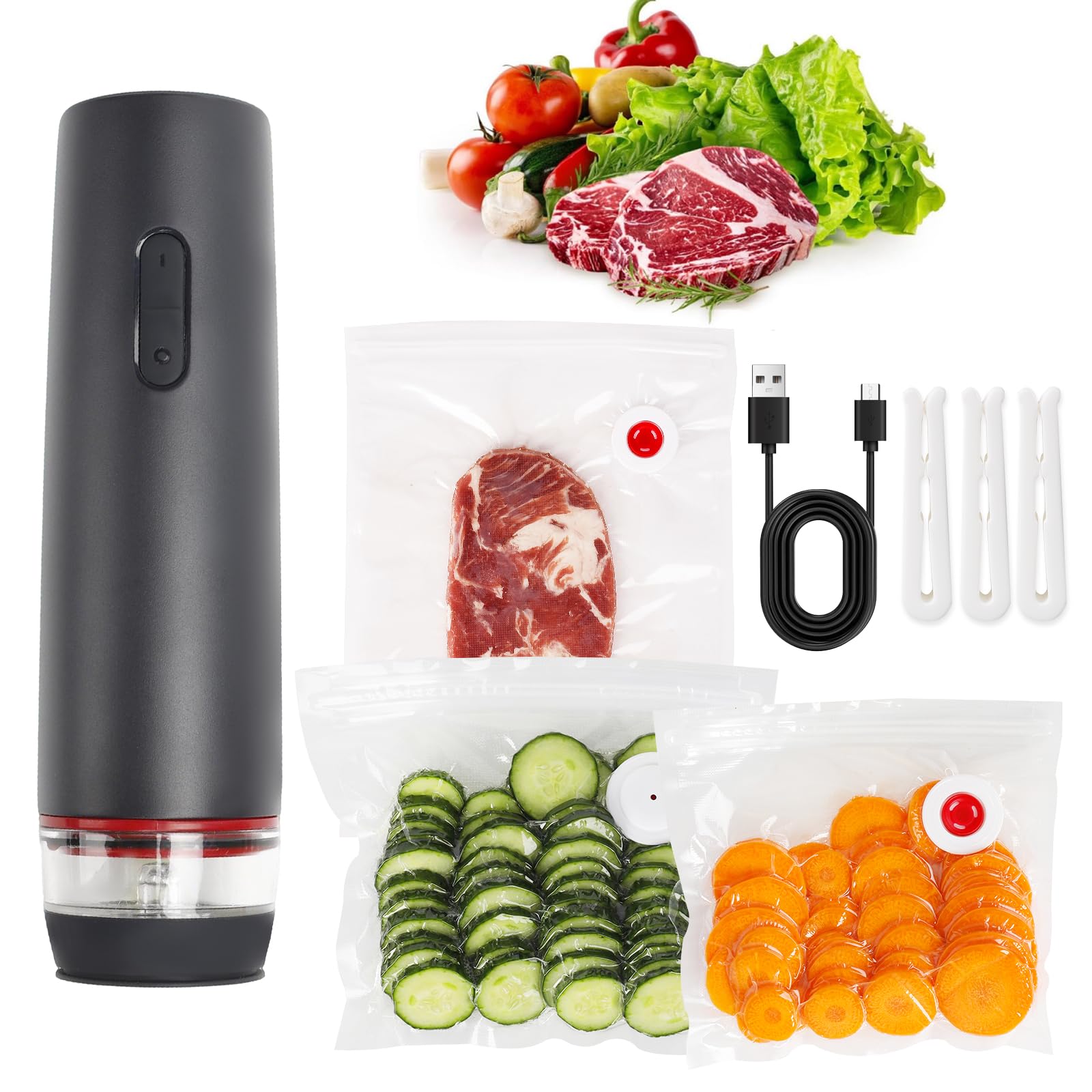 Sellador al vacío portátil para alimentos, 30 bolsas selladoras reutilizables con una potente máquina selladora al vacío de mano d