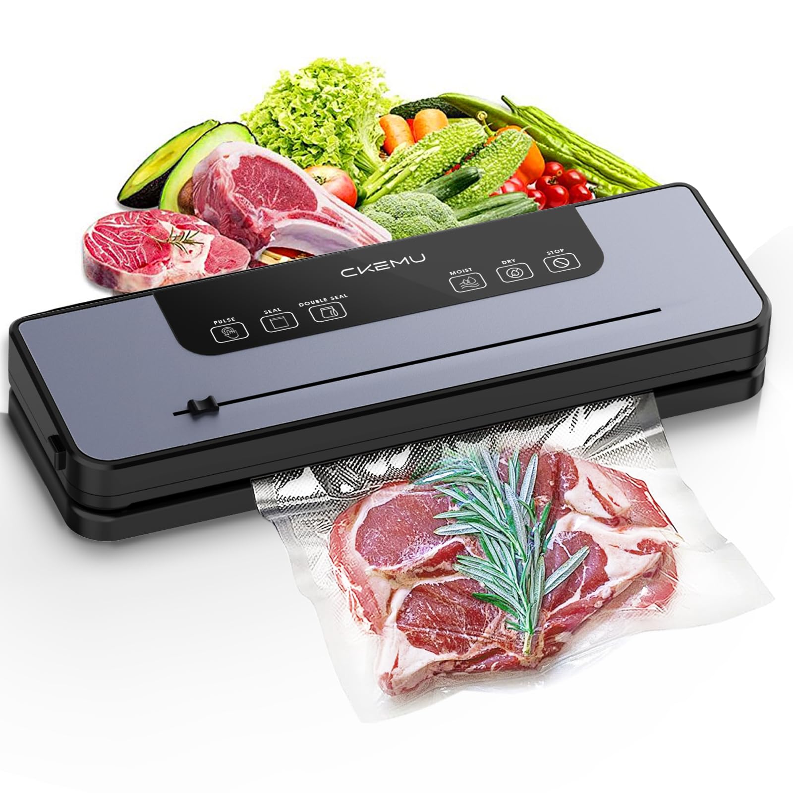 Sellador al vacío para ahorrar alimentos, 7 modos de vacío con cortador integrado y temporizador digital de cuenta regresiva, boqu