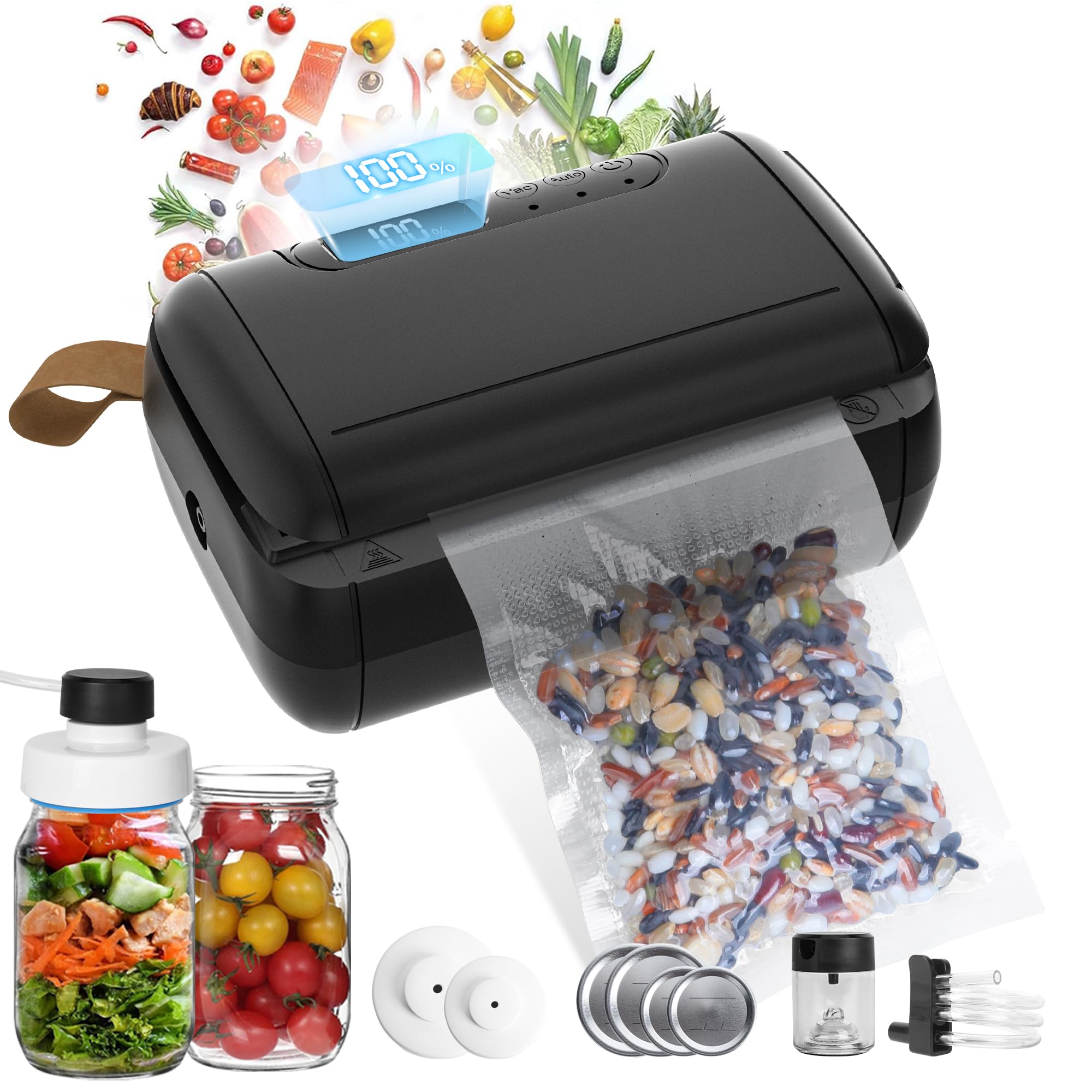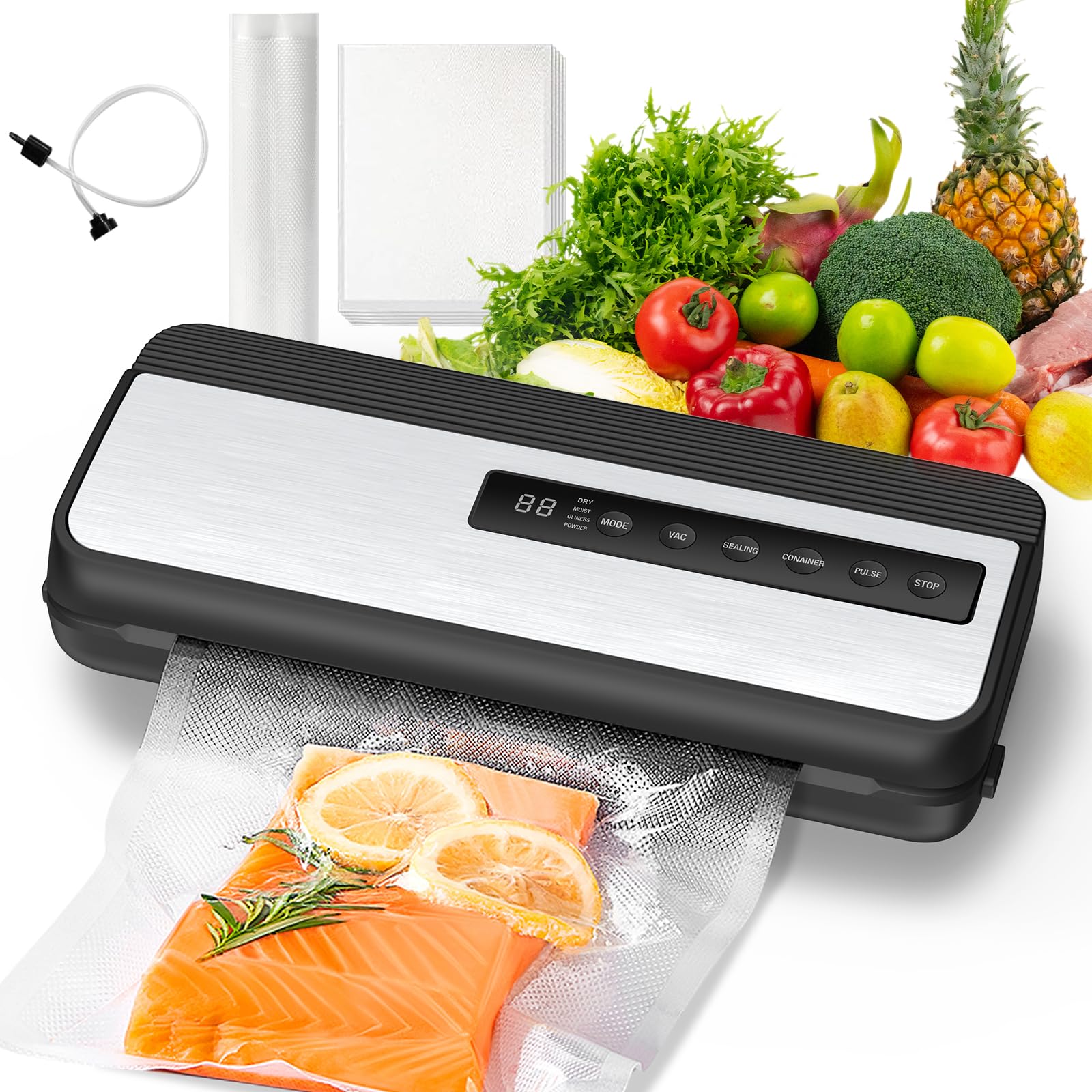 Máquina selladora al vacío: potente sellador al vacío de alimentos con 4 modos (seco/húmedo/esponjoso/polvo), pantalla digital de