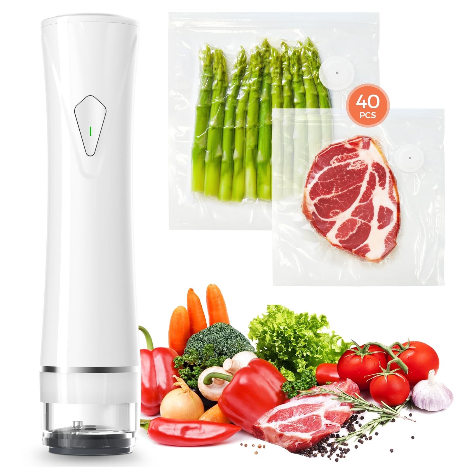 Juego de sellador al vacío (máquina selladora al vacío + 40 bolsas) Potente sellador al vacío de mano con tanque de agua visual, i