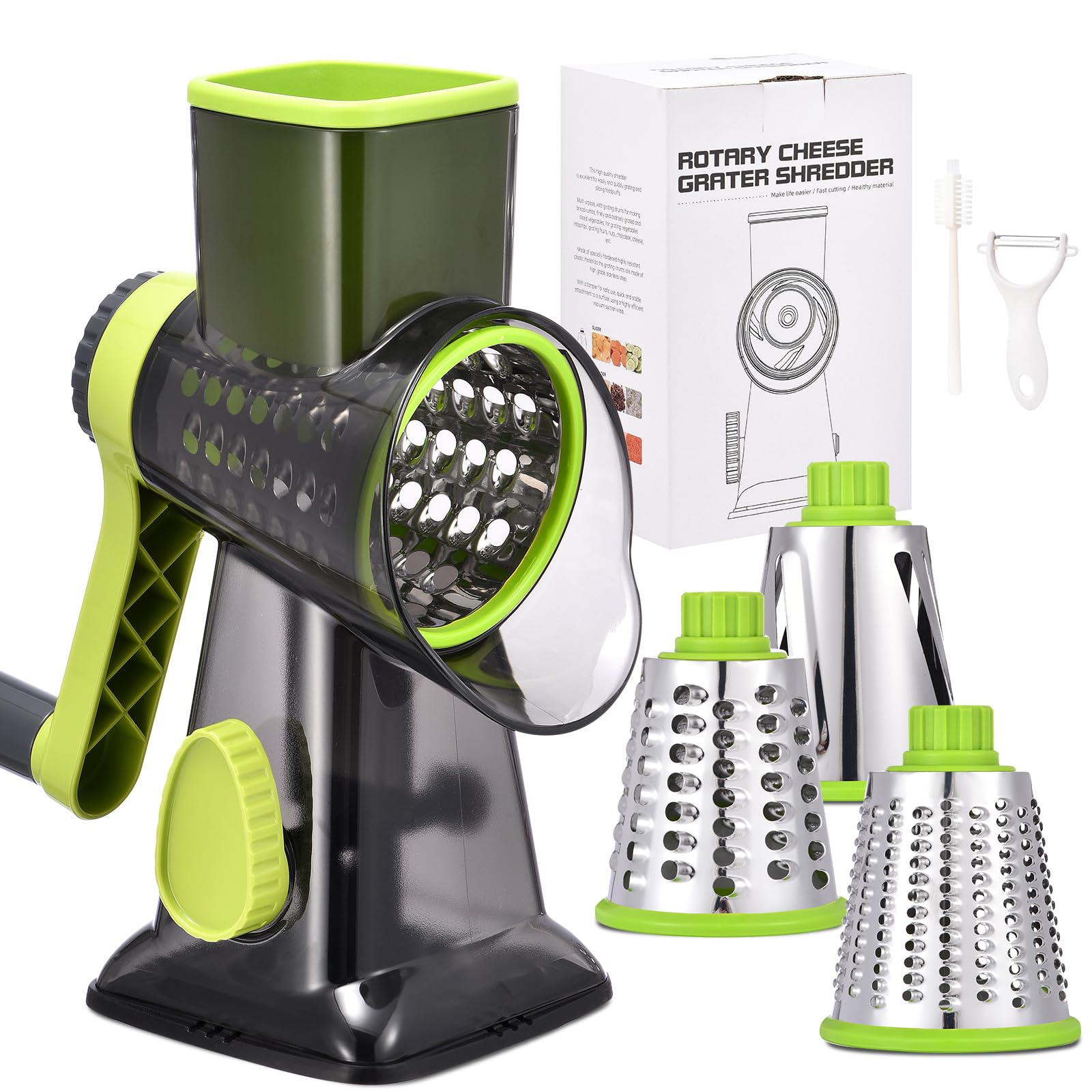 Rallador giratorio de queso, con manivela, trituradora de queso, cortador de verduras y mandolina para cocina, cuchillas intercamb