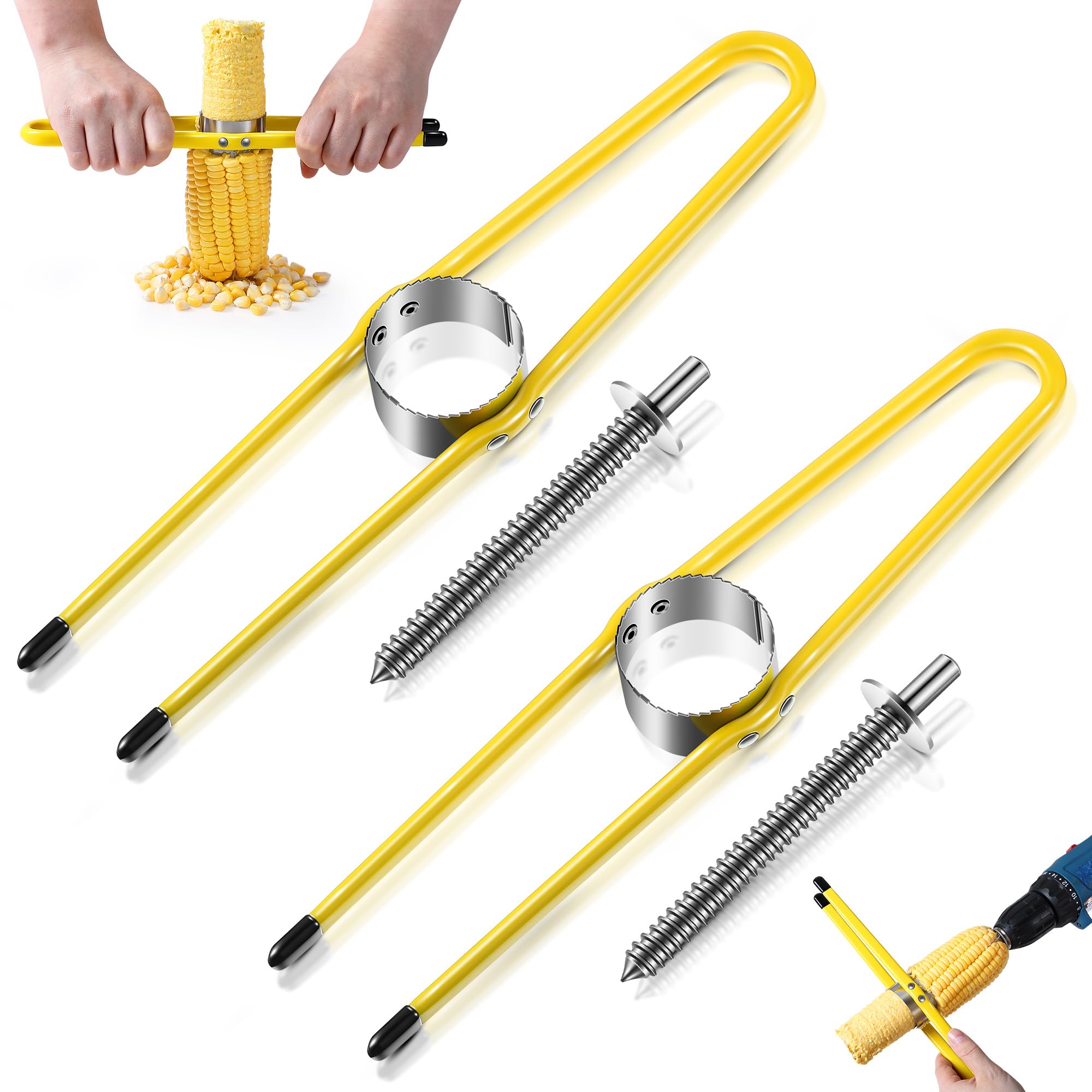 Paquete de 2 herramientas de eliminación de maíz con juego de brocas, pelador de maíz para extracción rápida de granos, pelador de