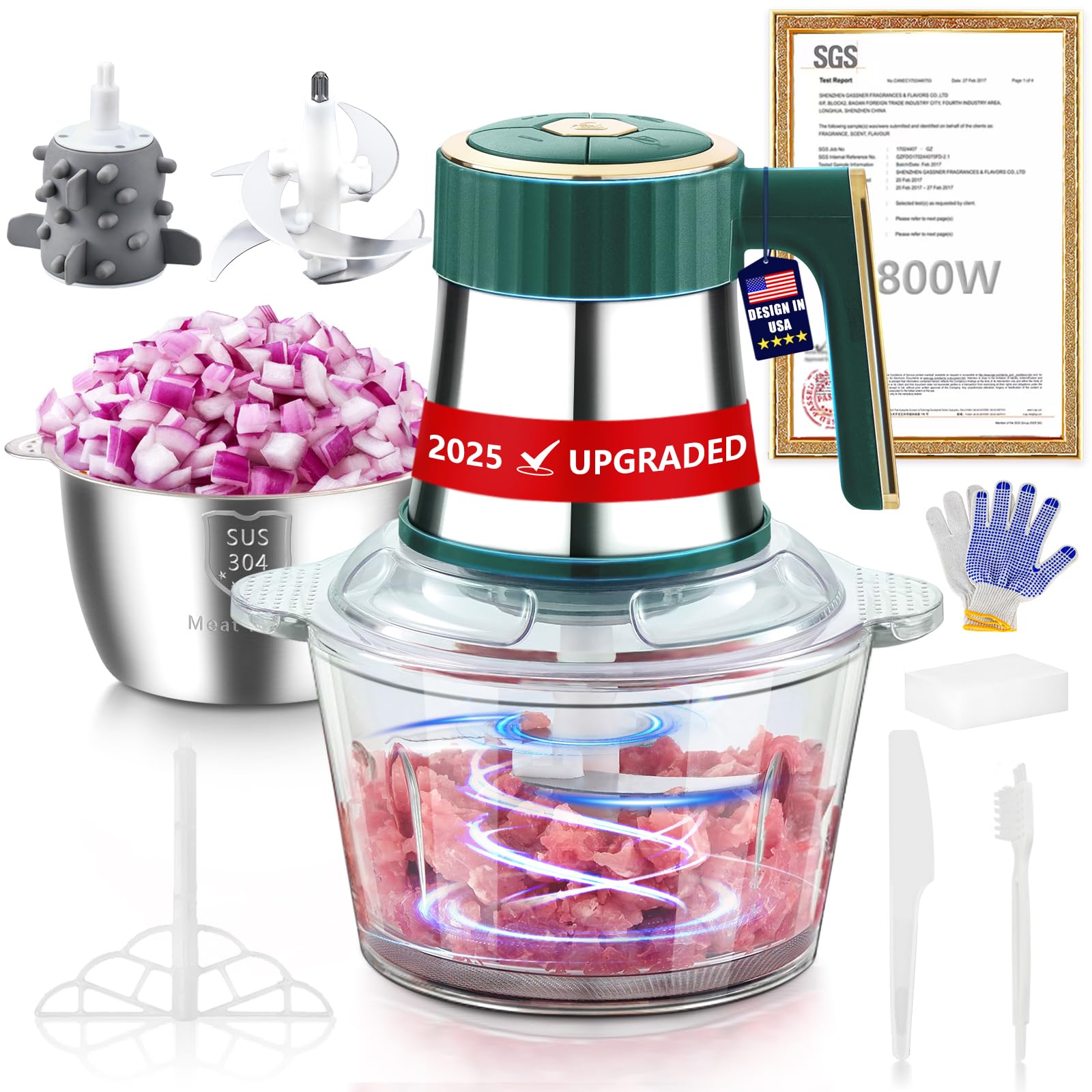 Procesador eléctrico de alimentos 5 en 1 【Motor alemán ultra potente de 800 W】6 cuchillas de acero de titanio | Molinillo de carne