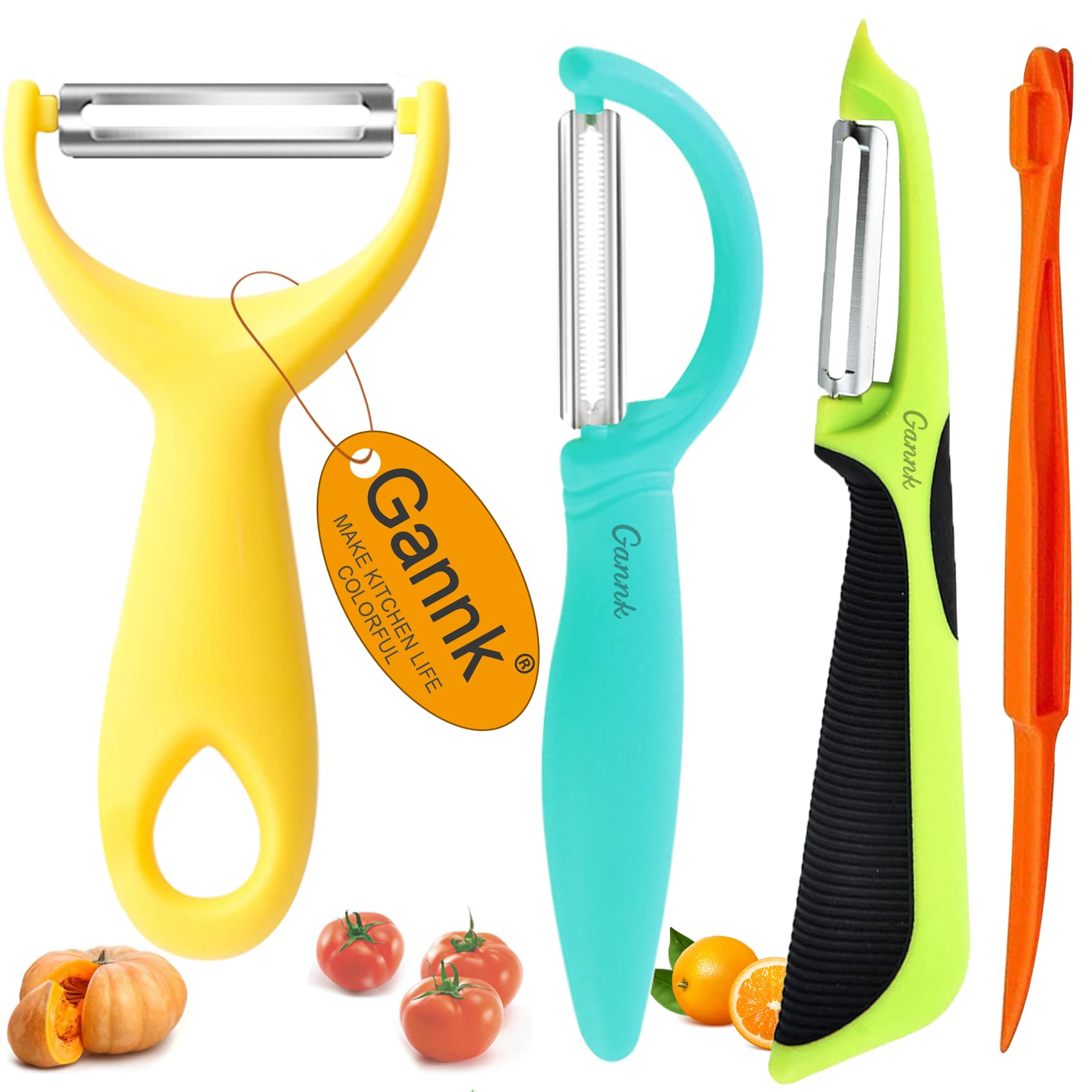 Kitchtic Juego de 3 peladores de papas de verduras, cáscara de frutas, zanahoria, manzana, kiwi, pepino y manzana, peladores de pa