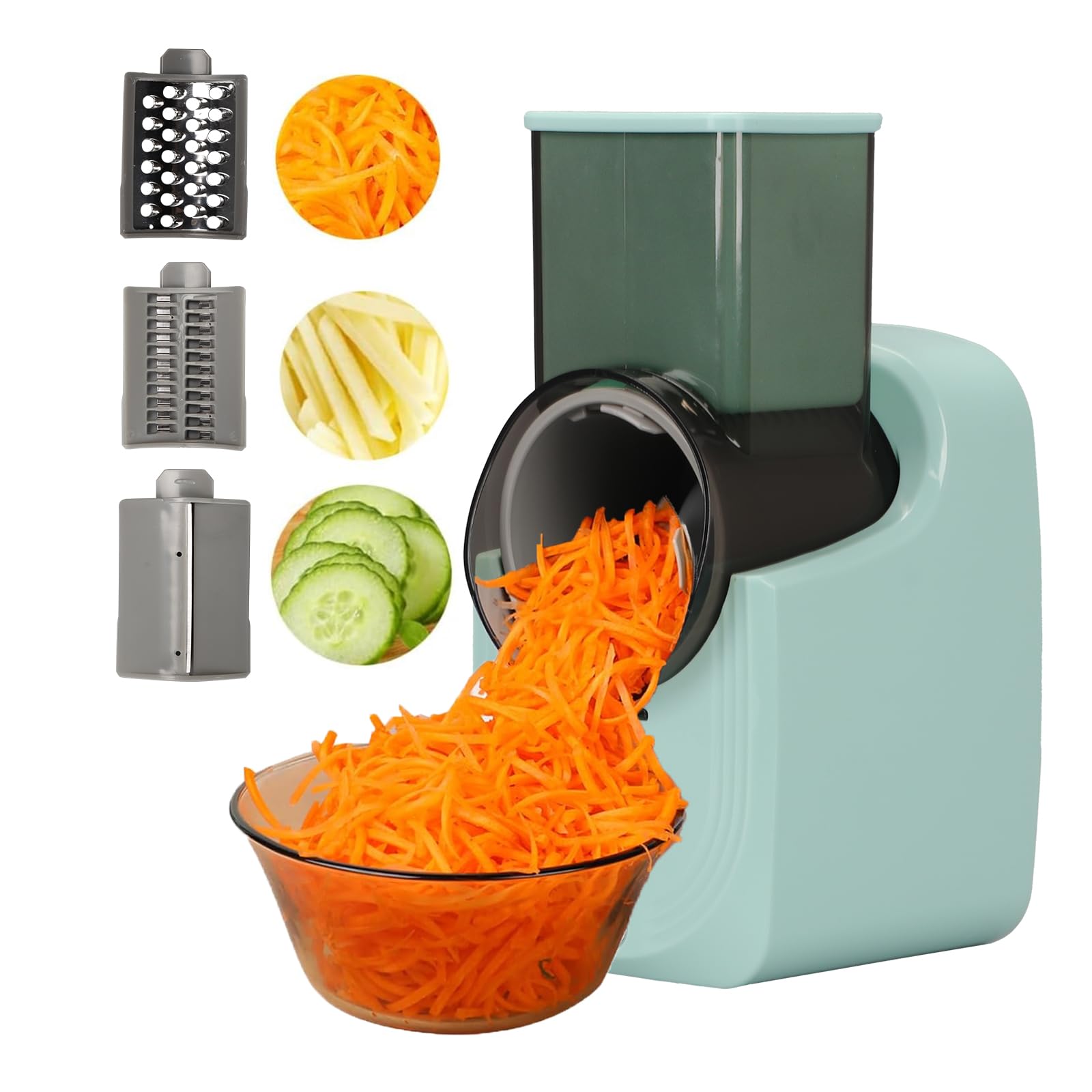 Rallador eléctrico de queso y triturador de verduras con 3 cuchillas bien diseñadas, máquina de ensalada para quesos, frutas y ver