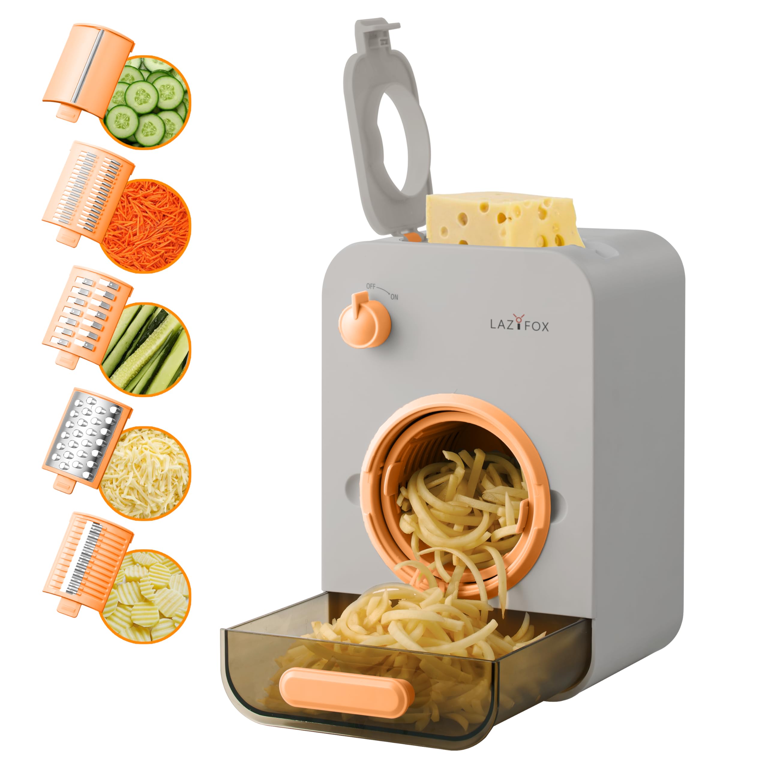 Electric Cheese Grater with 5 Blades – 5-in-1 Gourmet Vegetable Shredder for Carrot, Potato & More, 110mm Large Caliber, Built-in