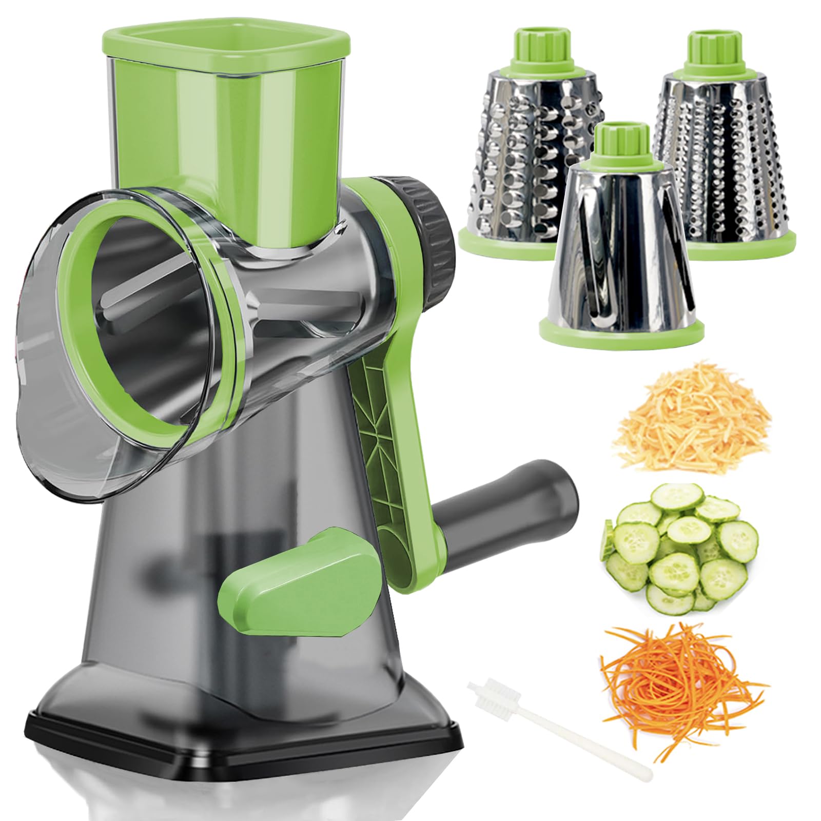 Joined Rallador rotativo de queso con mango – Cortador de mandolina con 3 cuchillas de tambor de acero inoxidable, cortador de ver