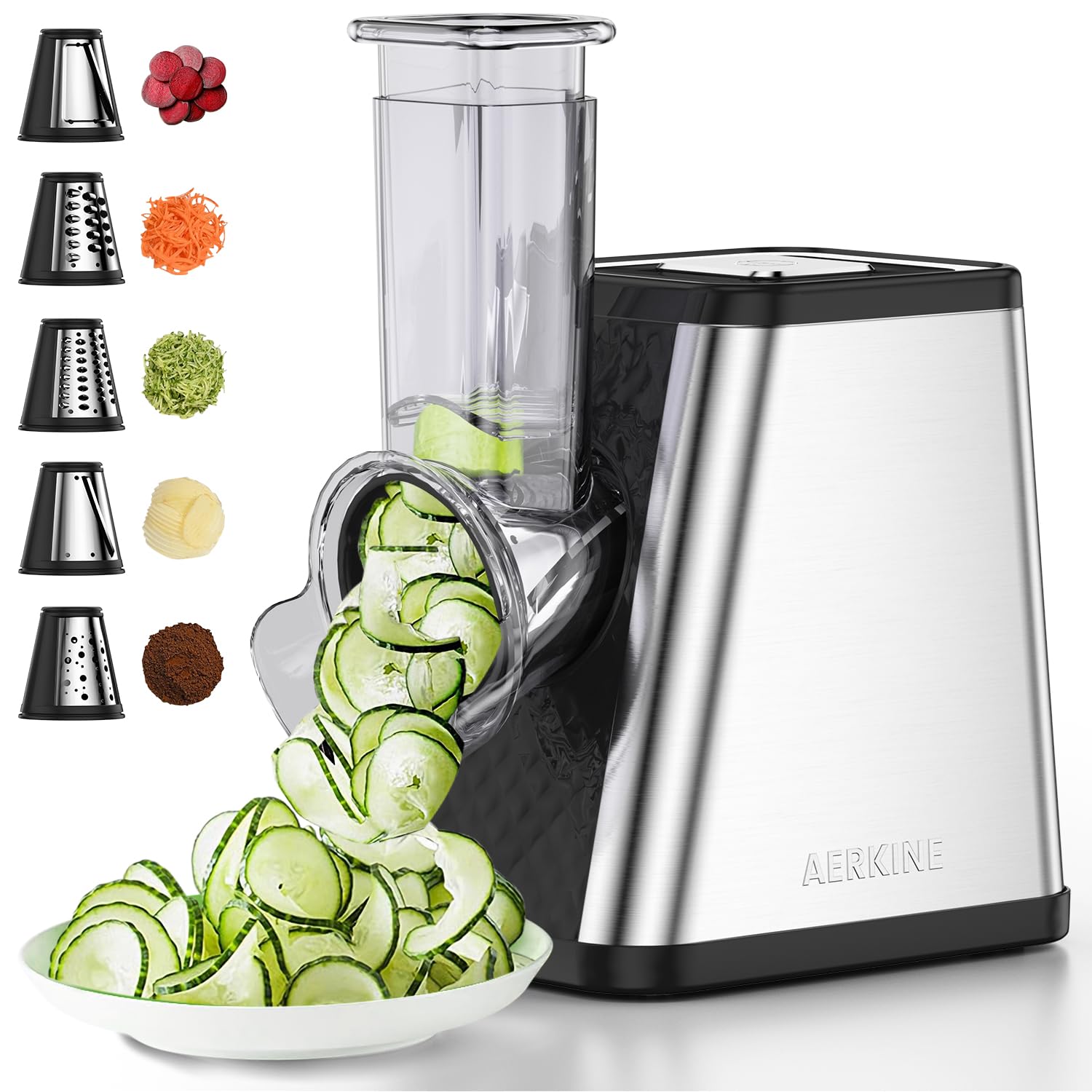 Electric Cheese Grater – 5in1 Cheese Shredder With Container for Kitchen.Upgraded Electric Vegetable Chopper for Block Cheese,Sala