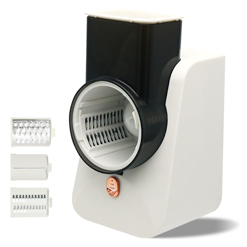 Rallador de queso de lluvia de carcasa inferior, rallador de queso eléctrico resistente para cocina con 3 cuchillas intercambiable