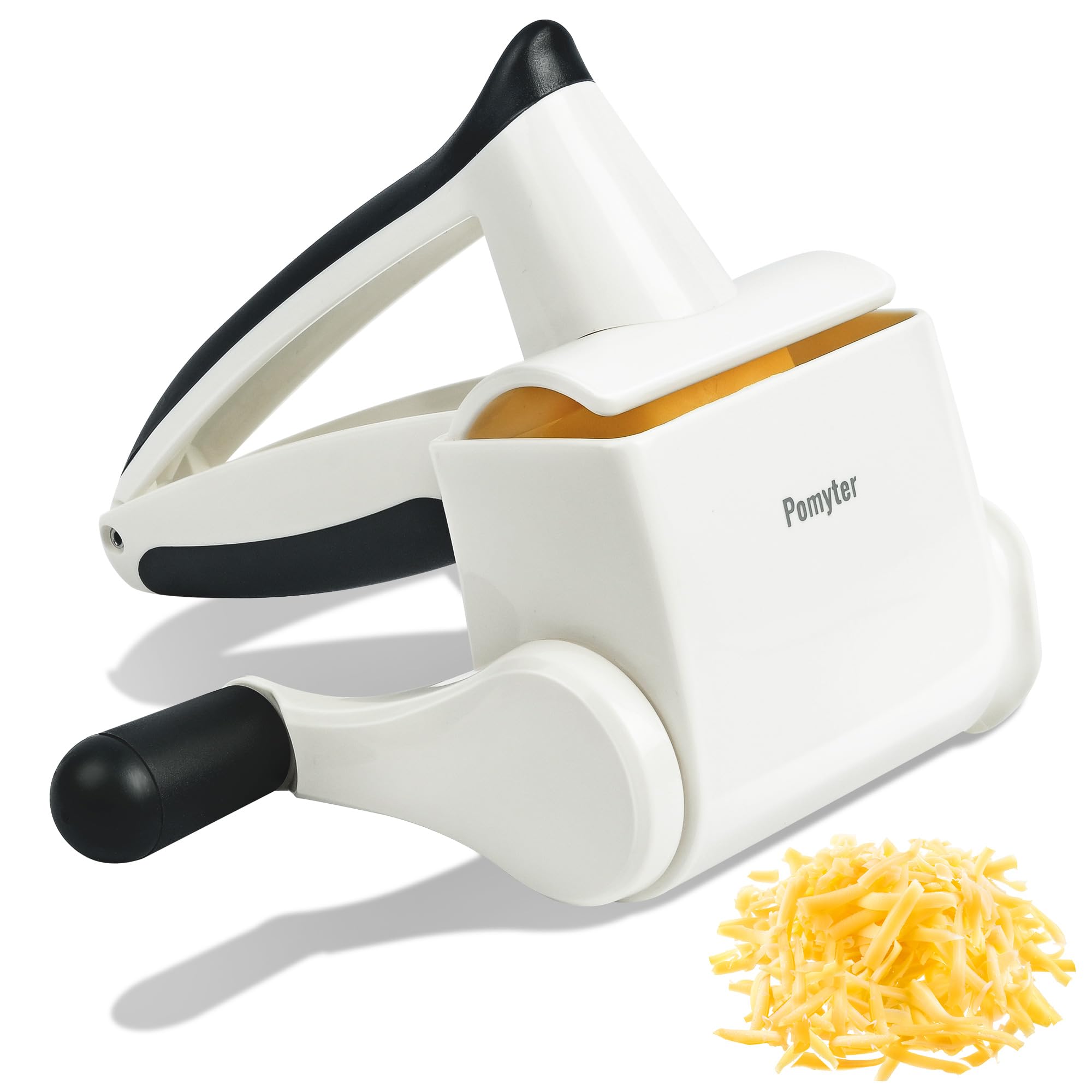 X Home Rallador de queso giratorio para cocina, triturador con 3 cuchillas intercambiables, rallador giratorio con mango y base de
