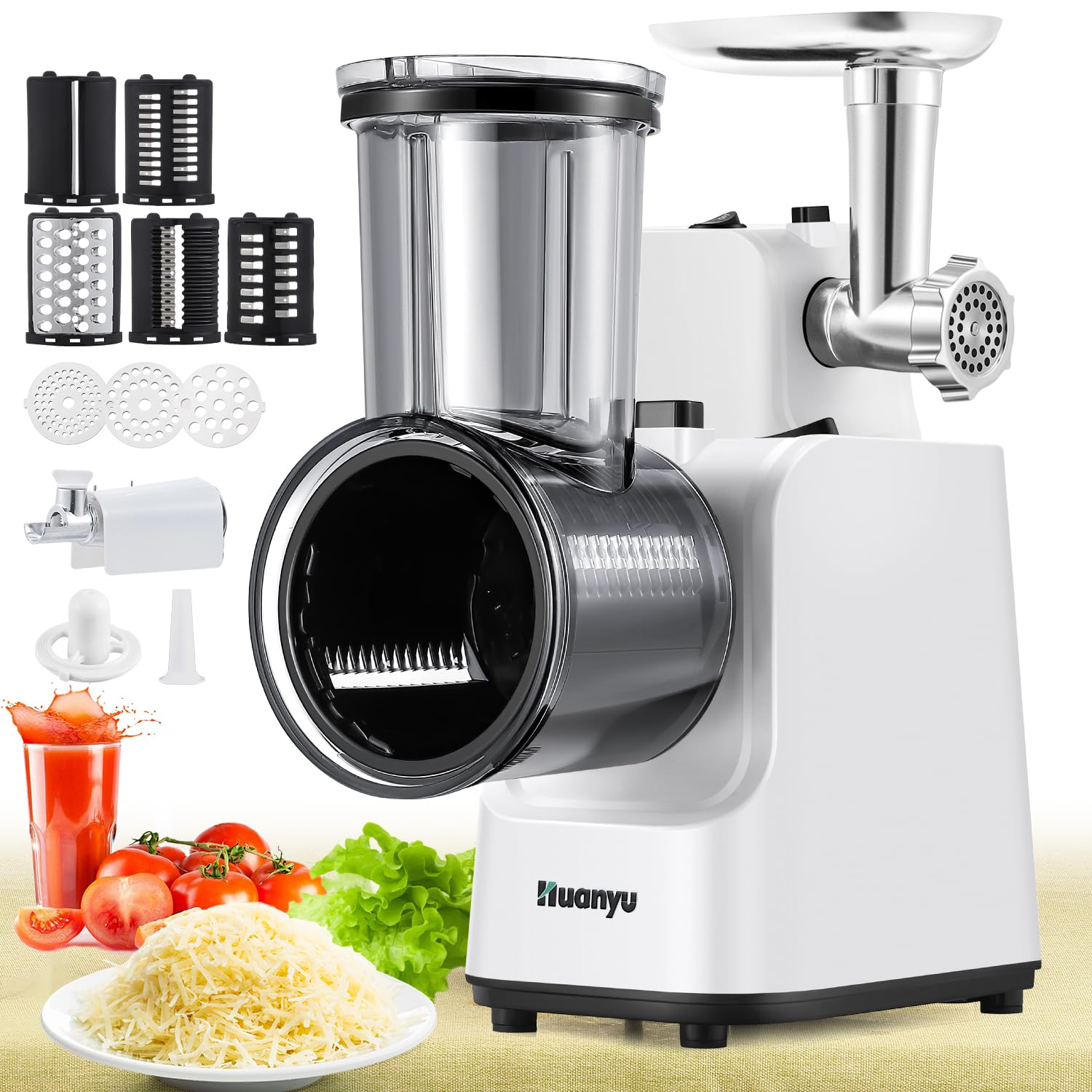 Huanyu Rallador eléctrico de queso, todo en uno, picador de carne multifuncional, cortador de verduras, picador profesional de ens
