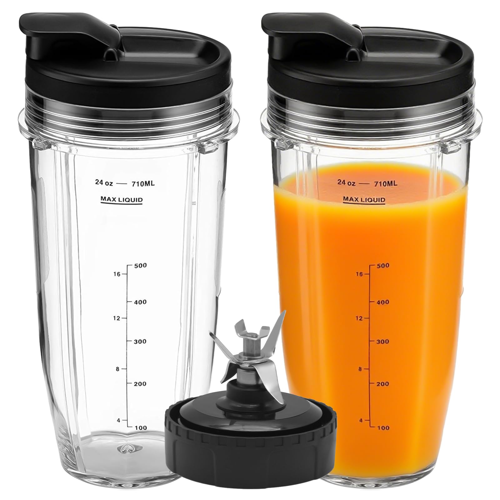Vasos de repuesto para licuadora de 24 onzas con tapa para Ninja, cuchilla extractora de 7 aletas compatible con Nutri Auto iQ BN4